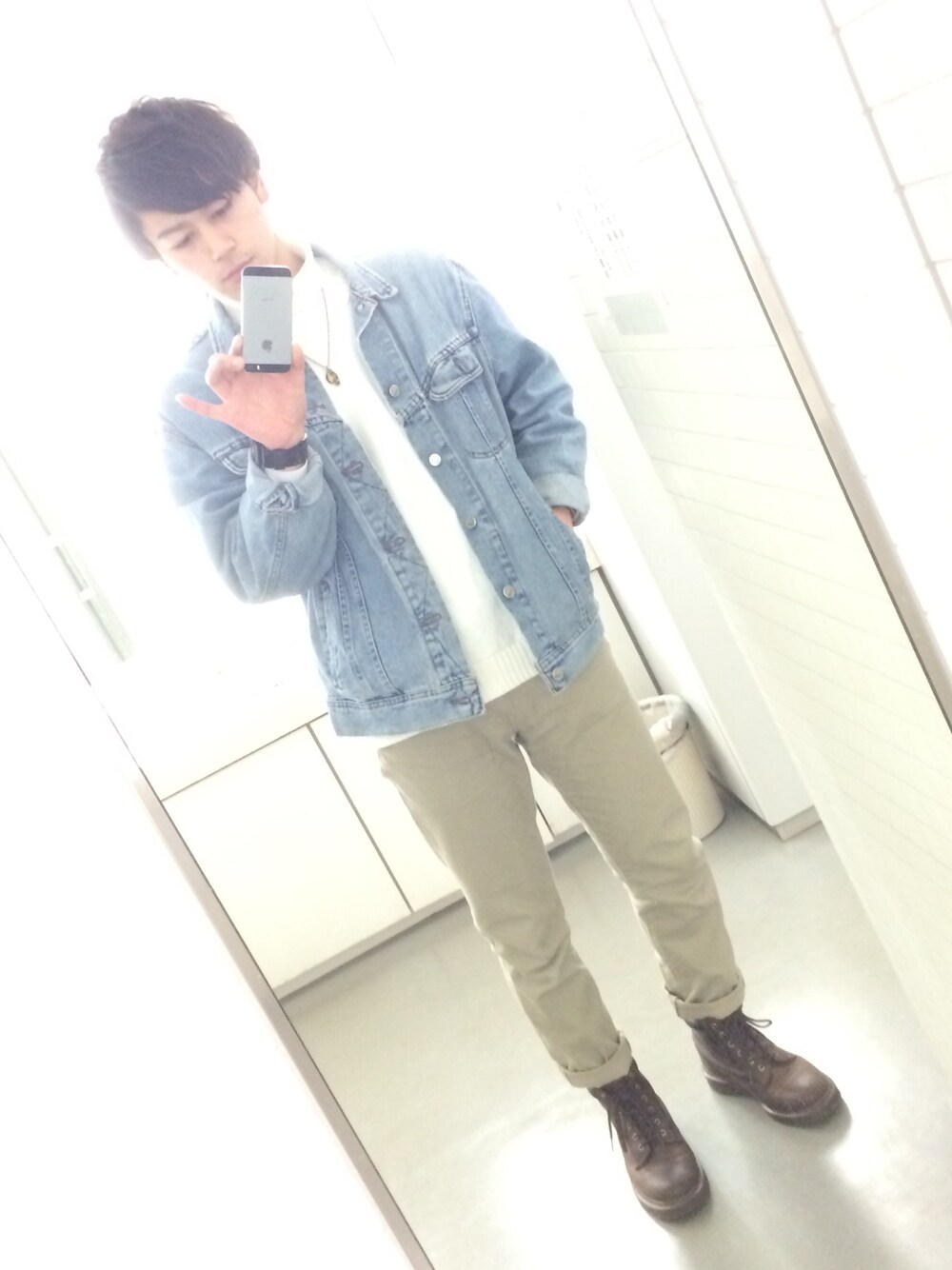 お久しぶりです!!! 今日は課題のため地元の大学の 図書館にきておりまする! おしっこして出てから最近 wear載せていないなと思ったので 手を洗ってからパシャり。 この明るめの色遣い初めてかもしれません! 最近はだぼっとしたアウターが好き ボトムはタイトめだけどスキニーで ない感じがたまらなくすきです。 今週末には髪の毛も切るので お楽しみに😎 ではまたとうこうしまーす!💓