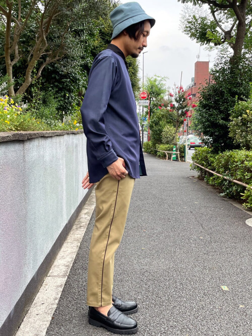 こんにちは、松本です。 いつもご覧いただきありがとうございます。 東京は梅雨の真っ只中。 遠くに見える「百日紅(サルスベリ)」の花が、初夏の到来を感じさせてくれます。 「初夏なのに長袖?」っと思った貴方、鋭いですね!! 今日はいつも見て頂いてるあなたに、いち早く秋の新作をご紹介します!! 光沢感のあるカジュアルクレリックシャツに、側章入りのストレッチスリムパンツを合わせました。 黒いジャケットを羽織れば、カジュアルパーティーにも参加できるオシャレコーデです。 オシャレなだけでなく実用的で着回しの効くこのパンツ。 今年後半のヘビーローテーションアイテムになりそうです。 ★パンツは大好評、予約受付中です!! ■パンツ¥6,000(税込価格¥6,600) ■シューズ¥8,000(税込価格¥8,800) ■ハット¥4,500(税込価格¥4,960)