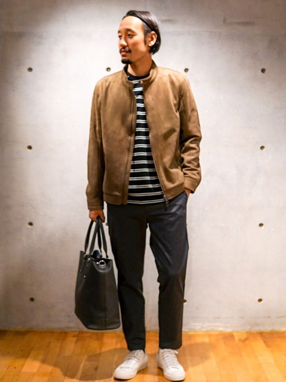 こんにちは、松本です。 いつもご覧いただきありがとうございます! 今日はラグジュアリー感漂う、スエードジャケットを着用。 インナーに控えめなボーダーシャツを合わせて足元はスニーカー。 高級ファッション誌から抜け出たような洗練されたスタイリングが完成しました (*^^)v 実はこのスエードジャケットは、ストレッチ素材のフェイクスエード。 見た目も着用感も本物そっくりですが、なんと¥10,000(税込み¥11,000)で購入可能♬ この秋冬、ゆとりのある「大人スタイル」にマストな1枚です! 大好評、予約受付中!! ■スエードジャケット¥10,000(税込価格¥11,000) ■パンツ¥8,000(税込価格¥8,800) ■バッグ¥8,000(税込価格¥8,800)