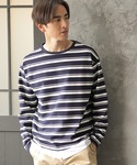 US staffstylingのTシャツ/カットソー「ポンチボーダー×布帛切り替えカットソー」を使ったコーディネート