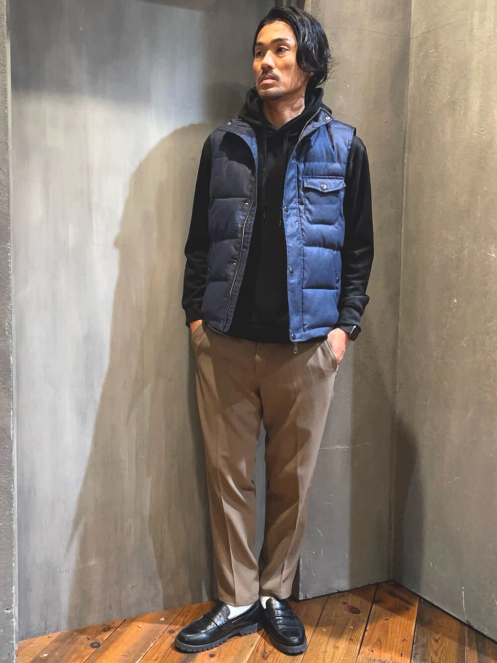 US staffstylingのダウンベスト「【SORONA/ソロナ】フロッキープリント機能中綿ダウンベスト<フード着脱可能/2WAY仕様>」を使ったコーディネート