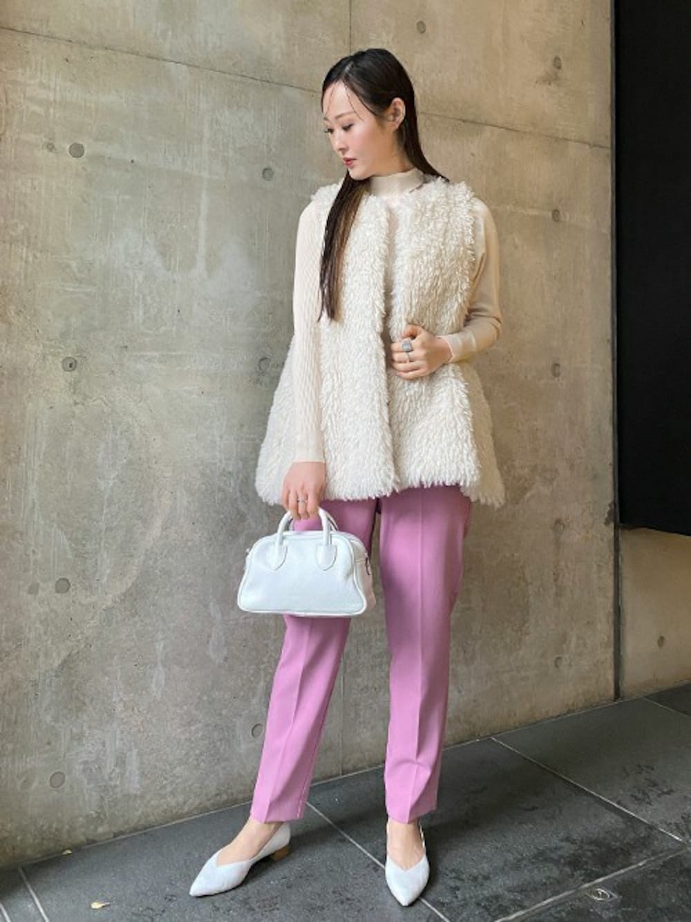 staff:kii 162㎝ 骨格ナチュラル 差し色のピンクが春待ち気分をアップする新春コーデ。 新年会や新しい1年の始まりのご挨拶が増える1月は清潔感のある白をベースに差し色で春待ち気分をプラスしてみると 明るい気持ちを後押ししてくれるおすすめポイント。 RIPANIの新作ミニボストンバッグはショルダーストラップに一目惚れの ラインデザイン。 コーディネイトにスポーツMIXなカジュアルなおしゃれ感をプラスしてくれる優れもの。