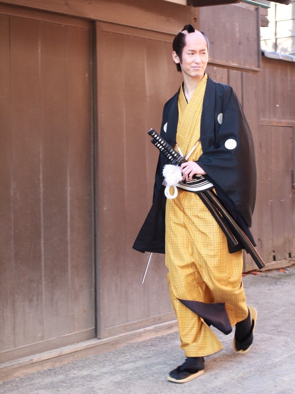 オレンジのインナーに ブラックのアウターで色の まとまりを意識した同心のコーディネートです。 着付け、ヘアセット込みで8500円でしたが 思い出はプライスレスです。