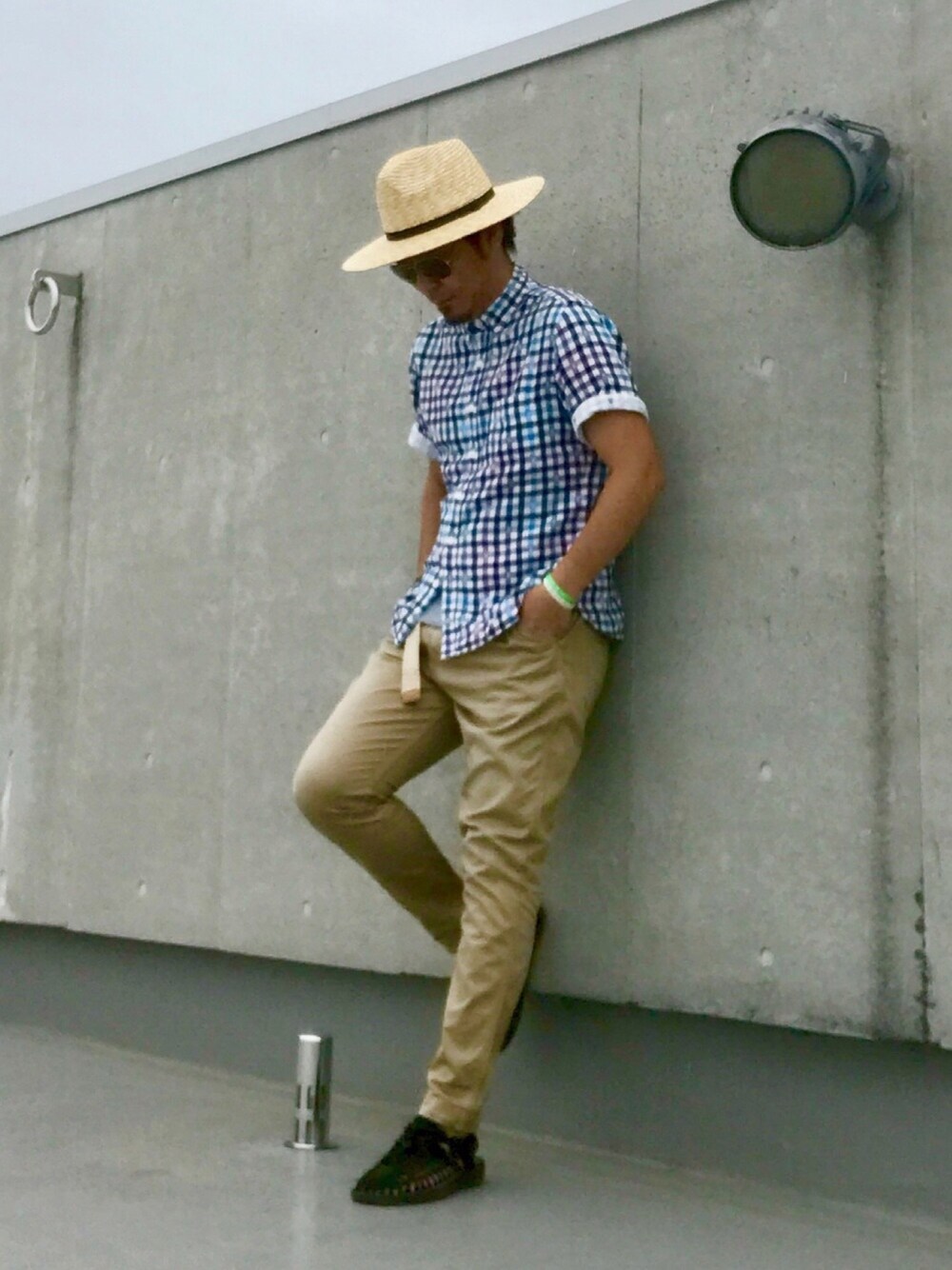 アメカジ⁉︎ 夏コーデ❗️ 麦わらのなんちゃら⁉️ いや、カールおじさん🤣 『麦わら帽子✖️チェックシャツ✖️チノ』 コーデ😆👍 Instagram➡︎@crowd0614