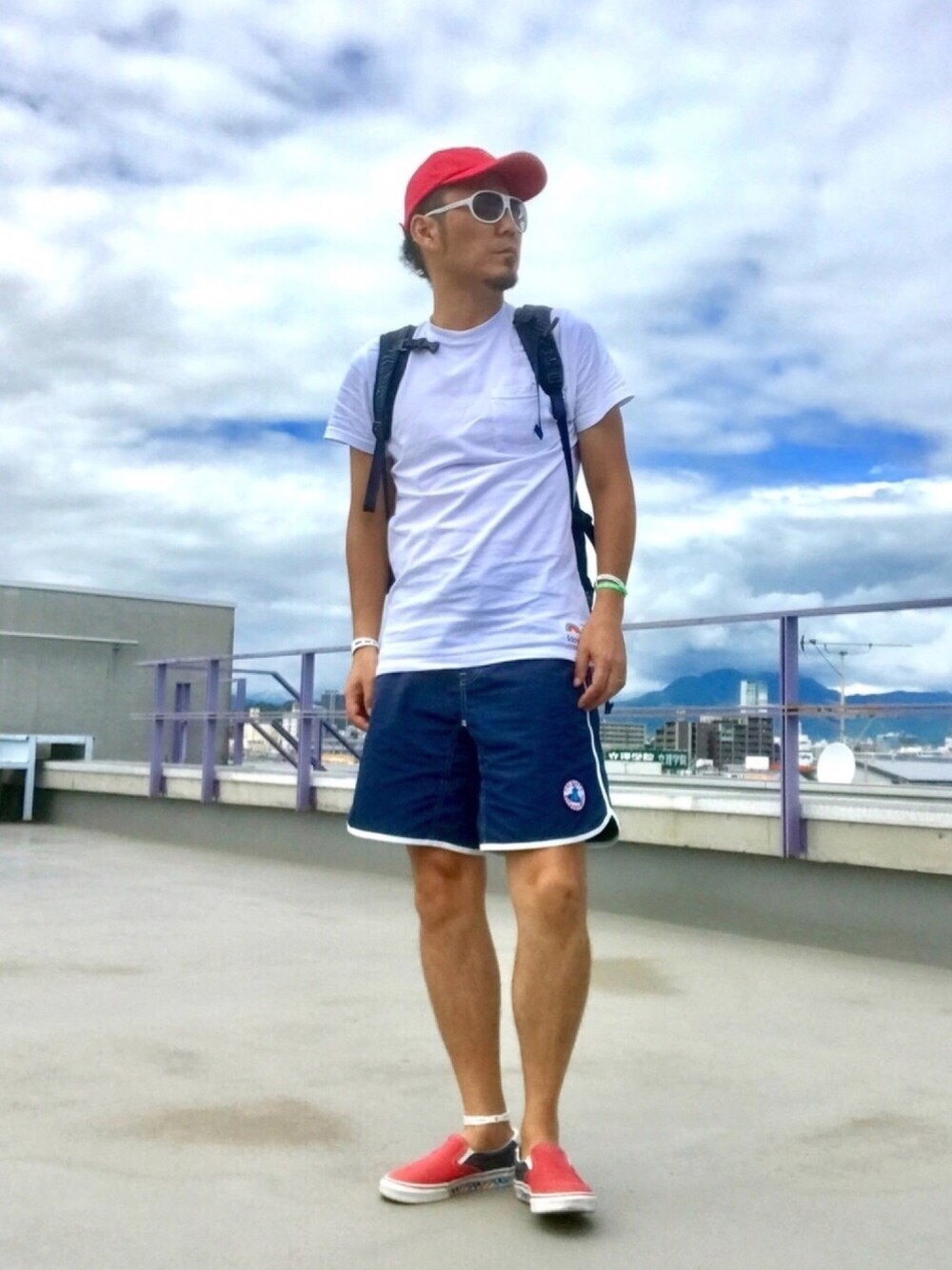 今日のコーディネートは 『Magic Numberボードショーツ✖️sdaysポケットTシャツ』のサーフ🏄スタイル 🔴⚪️🔵🔴の差し色レッド Instagram➡︎@crowd0614