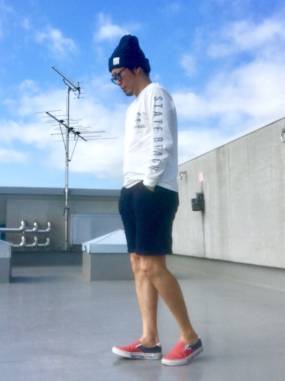 今日は、 ニット帽にモコモコハーパン 『ロンT✖️ハーパンコーデ』😆👍 今の時期だからできる、 今朝は涼しかったので、モコモコセットアップの短パンだけ着用✨☝🏻 全体を、🔵⚪️🔴のトリコロールでまとめてみました🇫🇷 Instagram➡︎@crowd0614