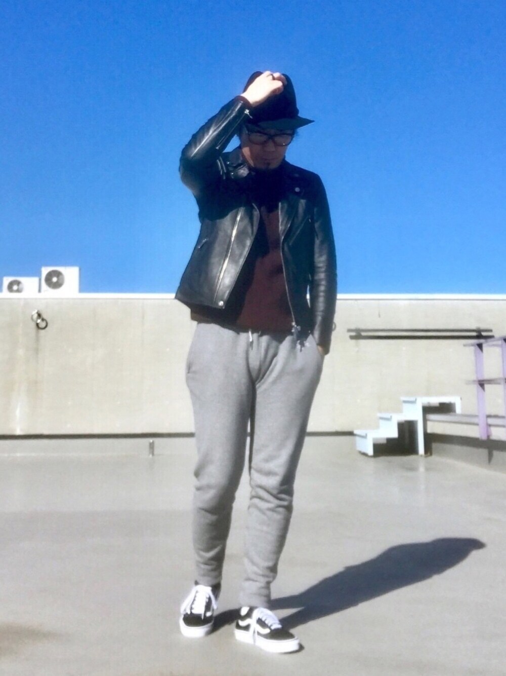 連日の寒さの為 タートルネックニット三昧🤣 そんな日は、 『ライダース✖️タートル✖️スウェットパンツ』コーデ😆👍 Instagram➡︎@crowd0614