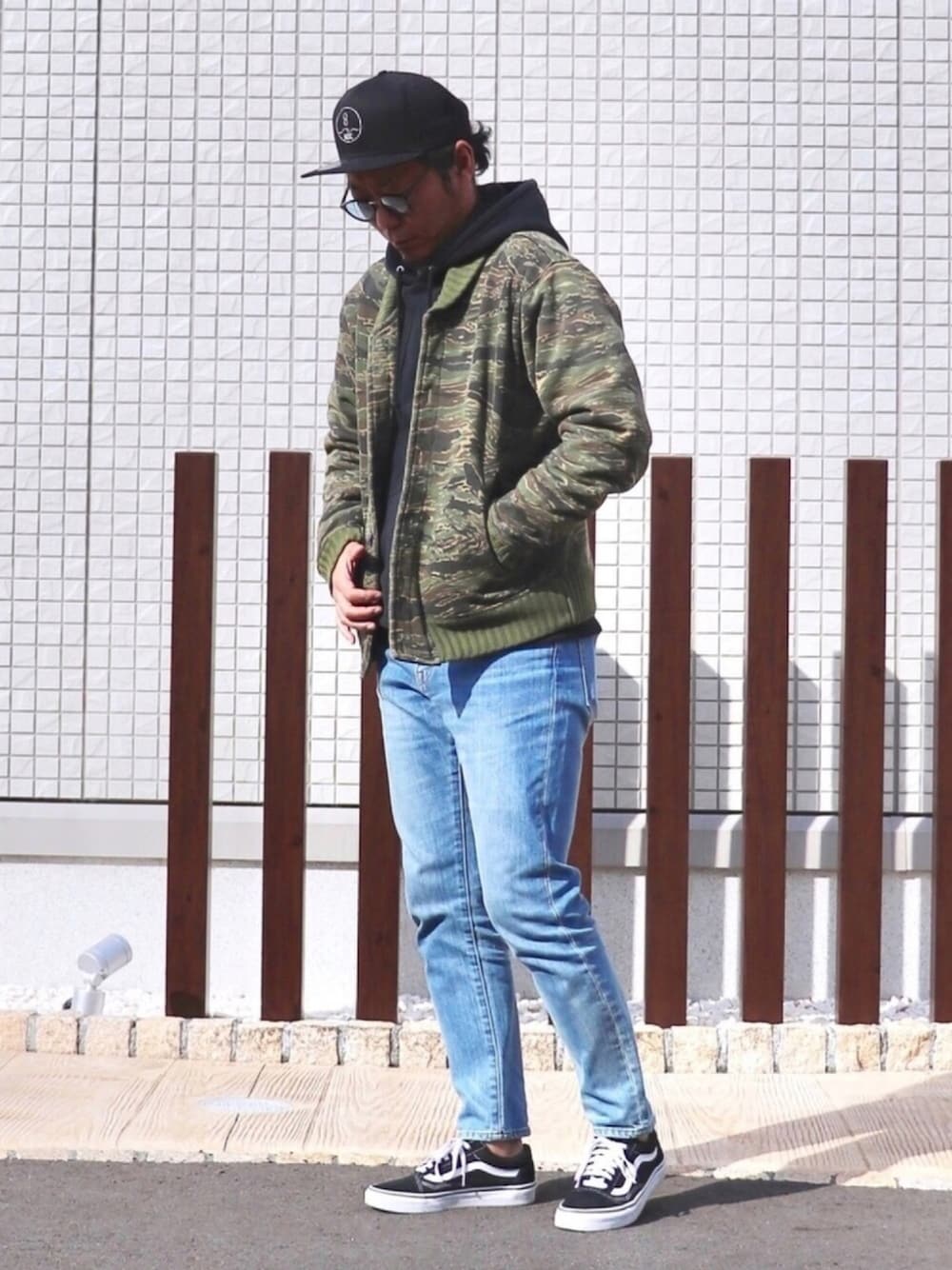 ZOZOデニム週間🤣 と言うことで 本日も 『#ZOZO公認ユーザー』投稿 スリムテーパードデニム ✖︎ カモフラブルゾン Instagram→@crowd0614