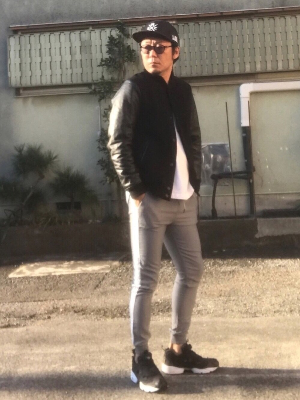 ラインジョガーパンツコーデ スタジャンを使った モノトーンスタイル🤩👍
