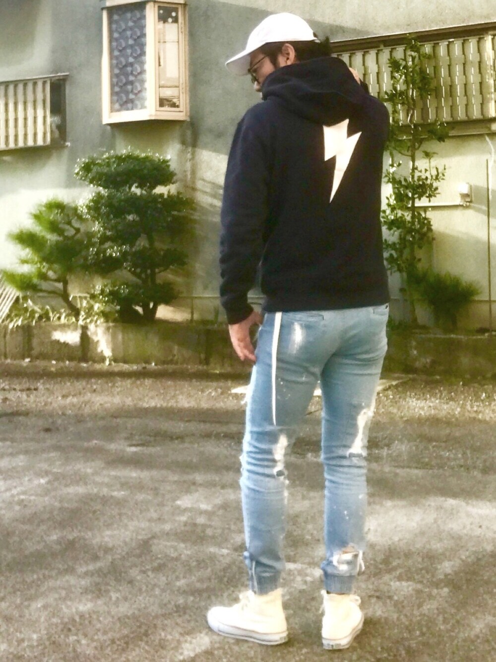 HIROのパーカー「ホワイトサンダーボルトパーカー(ブラック)」を使ったコーディネート