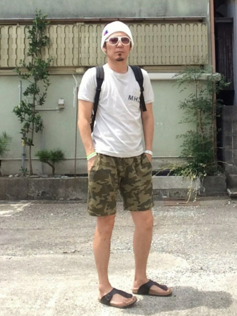 おはようございます😆 朝から、スーパーヒーロータイム😅 今日も休日満喫😁 さぁ〜休日コーデは サンダル祭りコーデ🌴🌈 トップス:Tシャツ(MHL.) ➕ ボトムス:カモフラハーフパンツ(Moery Sport) ➕ シューズ:サンダル(BIRKENSTOCK ) 買い物&新盆の支度✨ 休日の今日も愛顔(えがお)で過ごしましょう🌈🤗