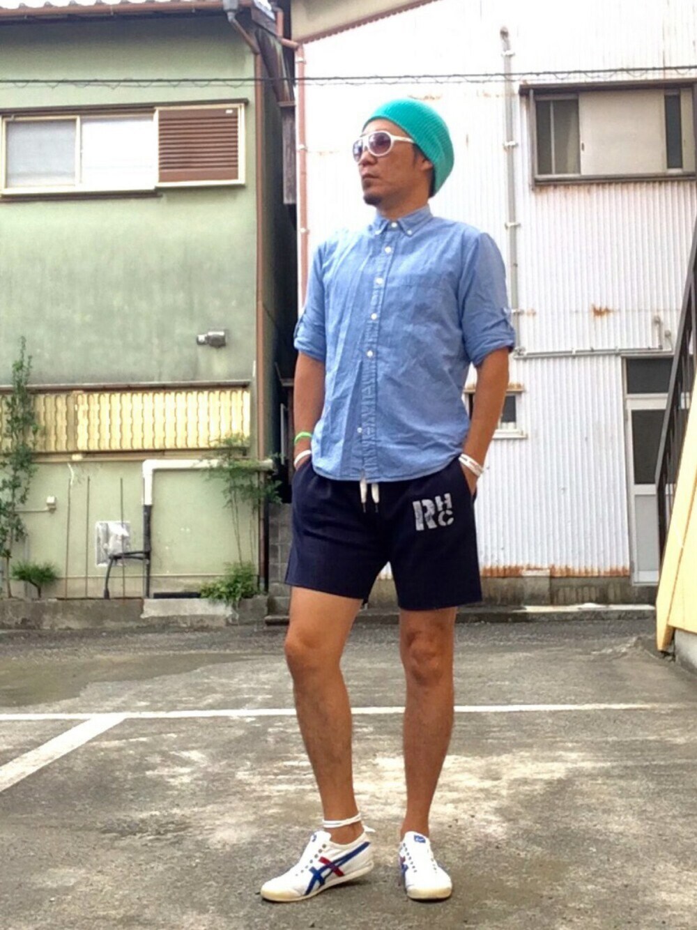 今日のコーディネートは昨夜、ファッションまとめを見ていて決めてました😁 『帽子➕伊達メガネのキャラ作り』イメチェン自由自在コーデ😎 キャラを決めるには最強の組み合わせな帽子と伊達メガネ。 しか〜し⁉️ ん❓ あれ⁉️🤔 写真を撮り終えて気づく📸 伊達メガネ👓じゃなくてサングラス🕶じゃん😭 のぉ〜〜〜予算少なめで、気軽に挑戦できるコーデって書いてあったのに 少し違う、これだと いつもと一緒じゃん… ちーーーーん😲 気をとりなおして、今日のコーデの紹介✌️ トップス:デニシャツ(GU) ➕ インナー:タンクトップ(UNIQLO) ➕ ボトムス:ショートパンツ(RHC) ➕ シューズ:スニーカー(オニツカタイガー) ➕ 帽子:ニット帽(Moery Sport) ➕ ファッション雑貨:サングラス(Moery Sport)