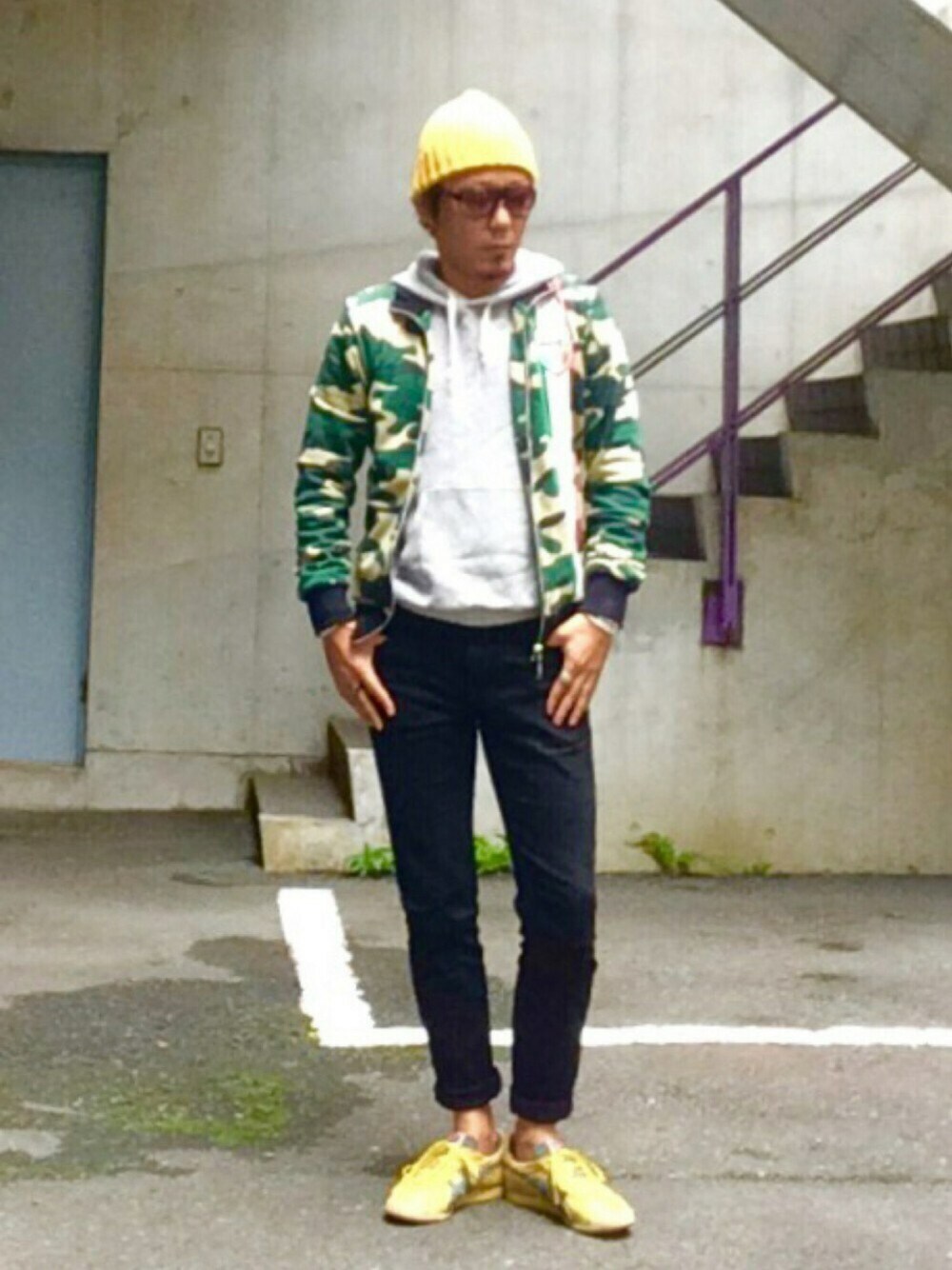 今日は、 イエロー✖️カモフラ✖️イエロー な気分😆 コーディネートは、 『モエスポカモフラセットアップ上✖️グレーパーカー✖️ブラッククラッシュスキニー』 モエスポとchampionのパーカーをレイヤード👍 最初に言ったように、今日のポイントは差し色イエローでサンドイッチ😁👖 トップス:セットアップ上(moery sport) ➕ トップス:パーカー(champion) ➕ ボトムス:ブラッククラッシュスキニーデニム(GU) ➕ シューズ:スニーカー(オニツカタイガー) ➕ 帽子:ニット帽(MOERY) ➕ ファッション雑貨:サングラス🕶(moery sport)