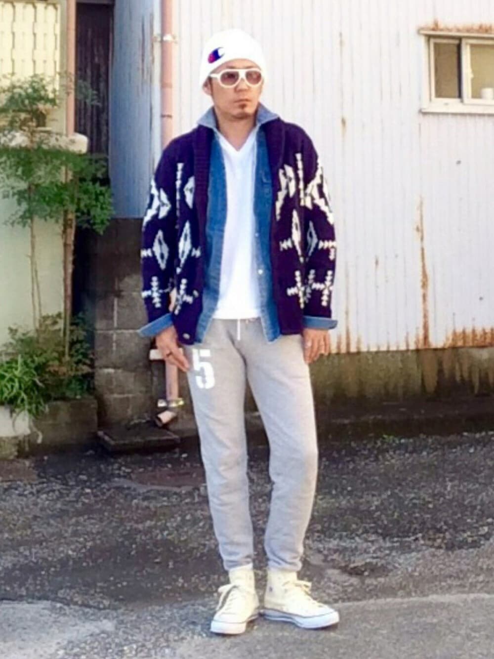 今日は、暑い☀️💦 そんな日に限って、ニットが着たくなり ネイティブ柄のショールカーディガン✖️スタッズダンガリーシャツを重ね着しました😅 さらに、スエパンとの相性も抜群👍💯 でも、外にでると☀️暑かった💦