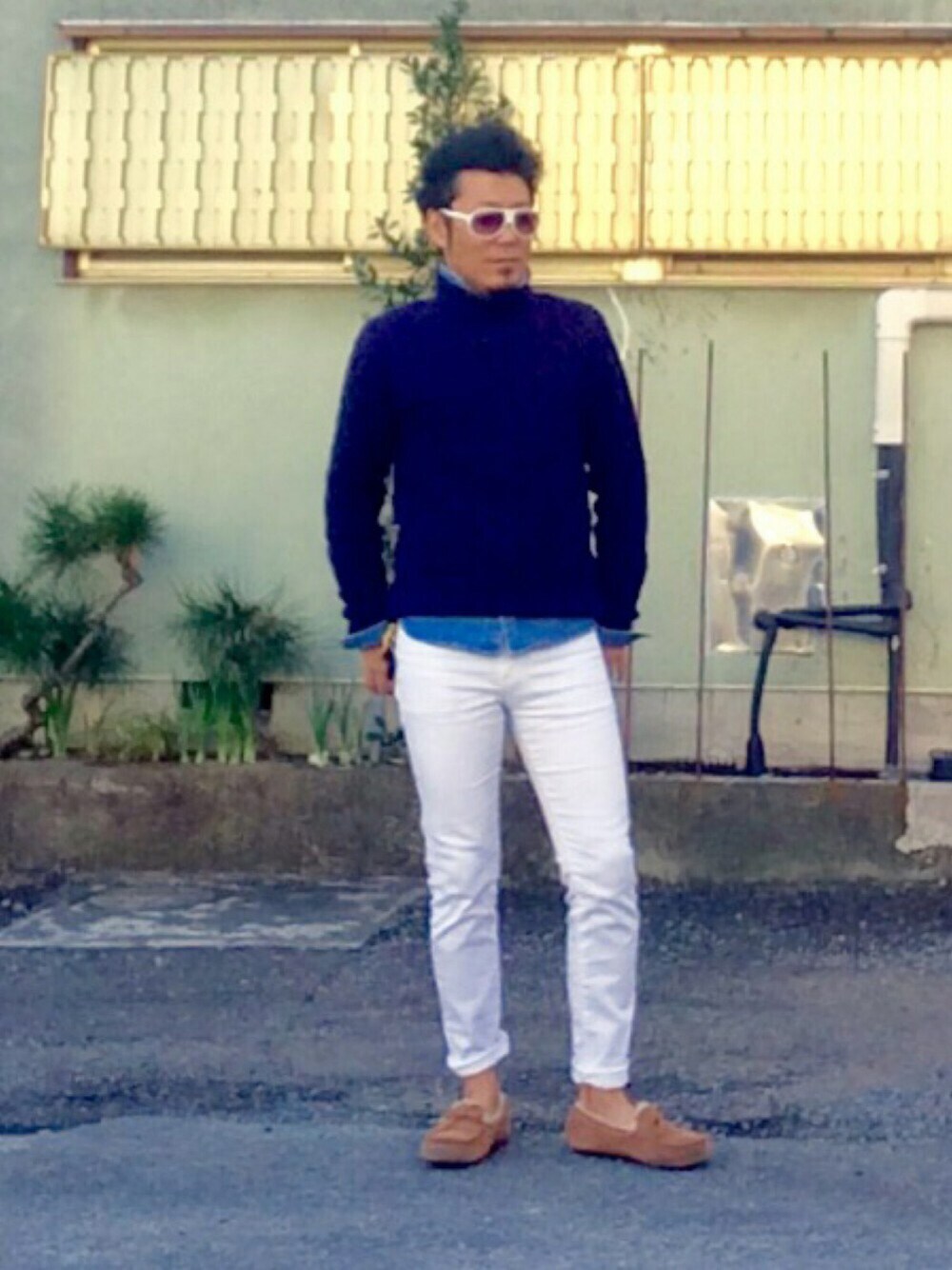 土曜の休日コーデは ホワイトデニムをメインにコーディネート👖 『ケーブル編みタートルネック✖️ダンガリーシャツ✖️ホワイトデニム』 ザ・大人カジュアル😆👍✨ 最近のマイブームは、タートルネックだなぁ✨