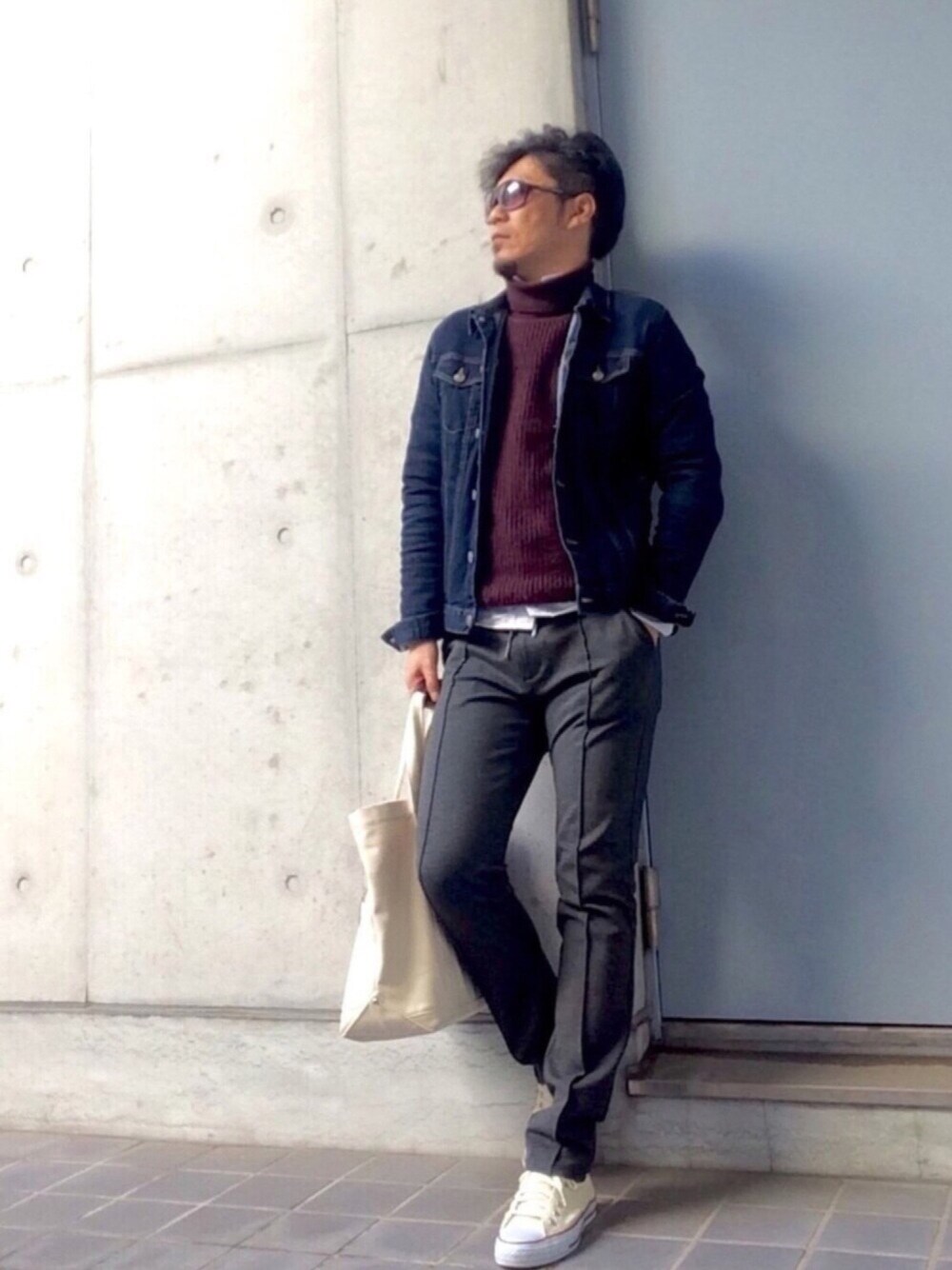 2017年仕事始め😄 今年は少しゆとりを持って仕事できたらいいなぁ(^^;)😅 さぁ〜仕事始めのコーディネートは カジュアルになり過ぎない 『ストランドの度詰センタープリーツジャージパンツ✖️白シャツ✖️タートルネックニット』 このパンツ、ジャージ素材なので履き心地最高に気持ちいい😆👍 寒さが戻って来たので、タートルネックニット👕首元を温めれば😅 ちょっと学校の先生みたい😭 アウター:Gジャン(WEGO) ✖️ トップス:タートルネックニット(UNIQLO) ✖️ インナー:白シャツ(GU) ✖️ ボトムス:センタープリーツ度詰めジャージパンツ(ストランド) ✖️ シューズ:スニーカー(コンバースオールスター)