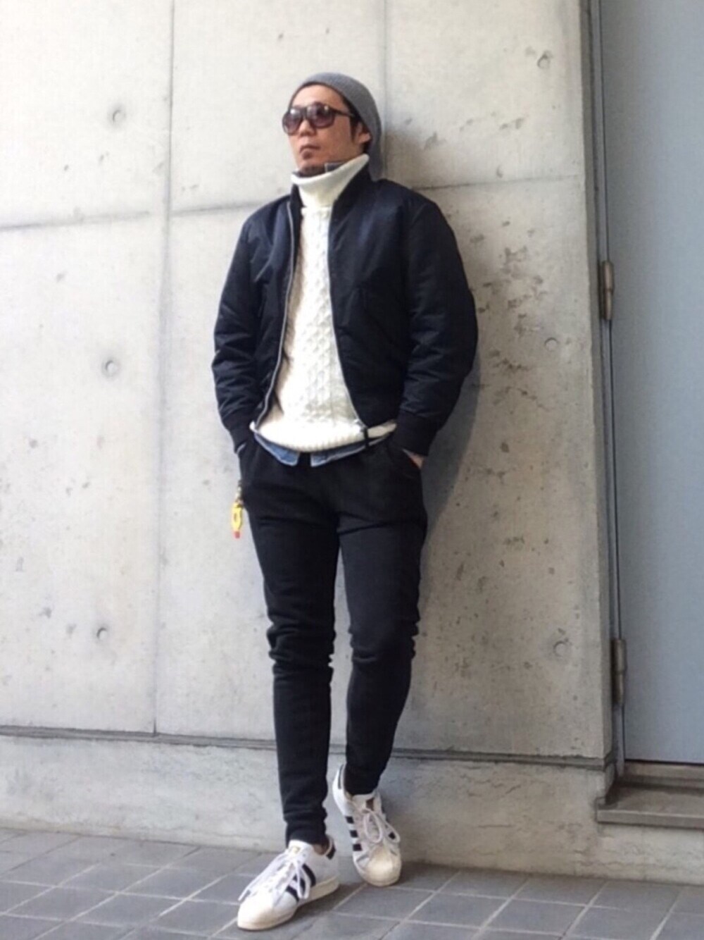 2月最初のコーディネート と、その前に 1月の月間ランク47位🎉🍾👏🏻でした😆✌️ 『MA-1✖️タートルネックニット✖️スエパン』 カラーは、 ネイビー✖️ホワイト✖️ブラック カラーは、三色が基本🇫🇷 そろそろ、春コーデかなぁ🤔