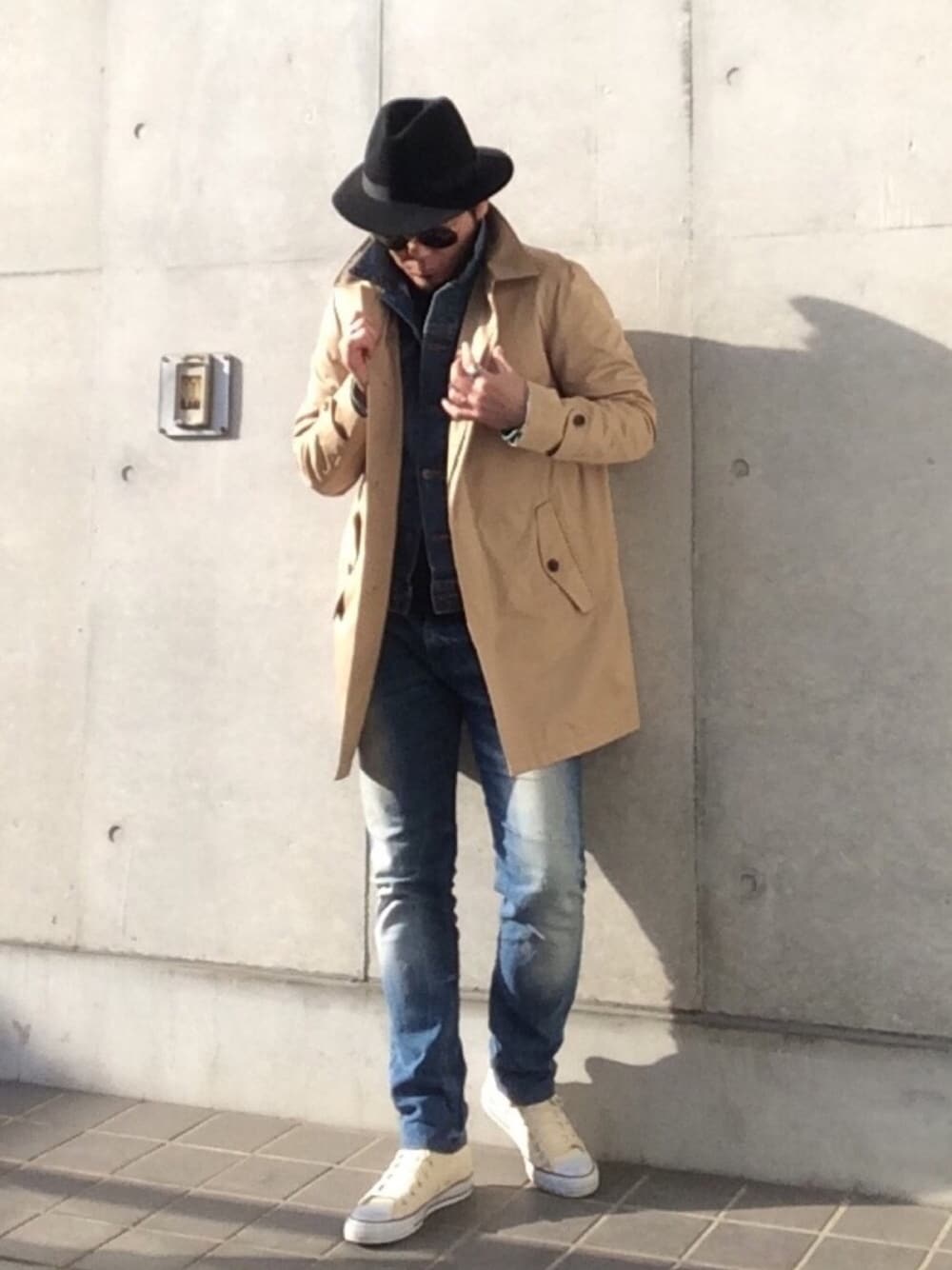 こんばんは🌇 今日のコーディネートは 春コーデと言えば、 ステンカラーコートやトレンチコート 『ステンカラーコート✖️デニデニ』 トップスは、タートルネックニット😆👍