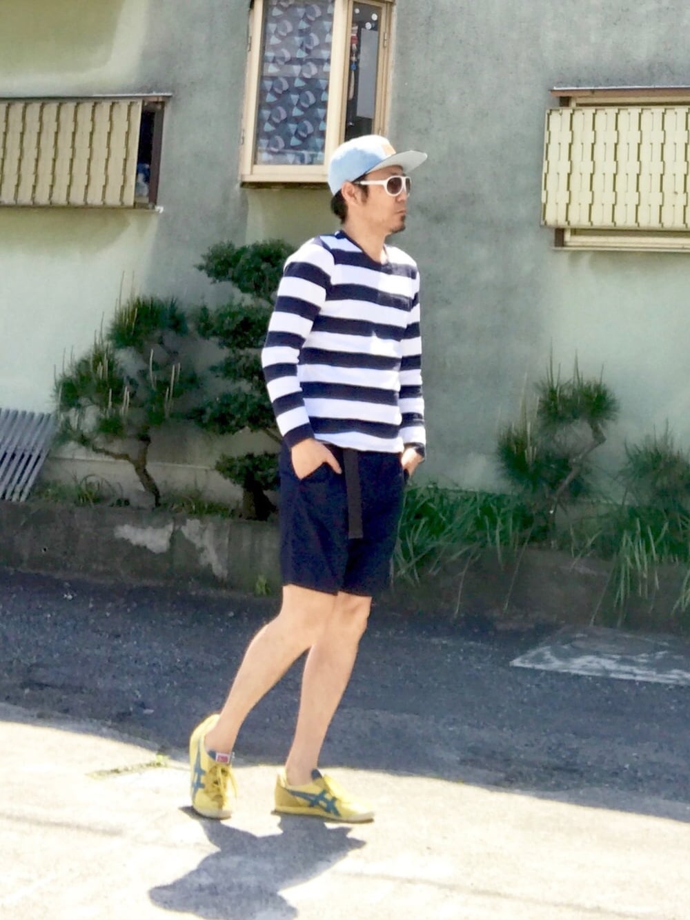 マリンボーダーで ショーパンおじさんなコーデ 春コーデはやっぱり、マリンボーダーでしょ〜🤣 差し色にイエロースニーカー👟をチョイス😆👍 Instagram➡︎crowd0614