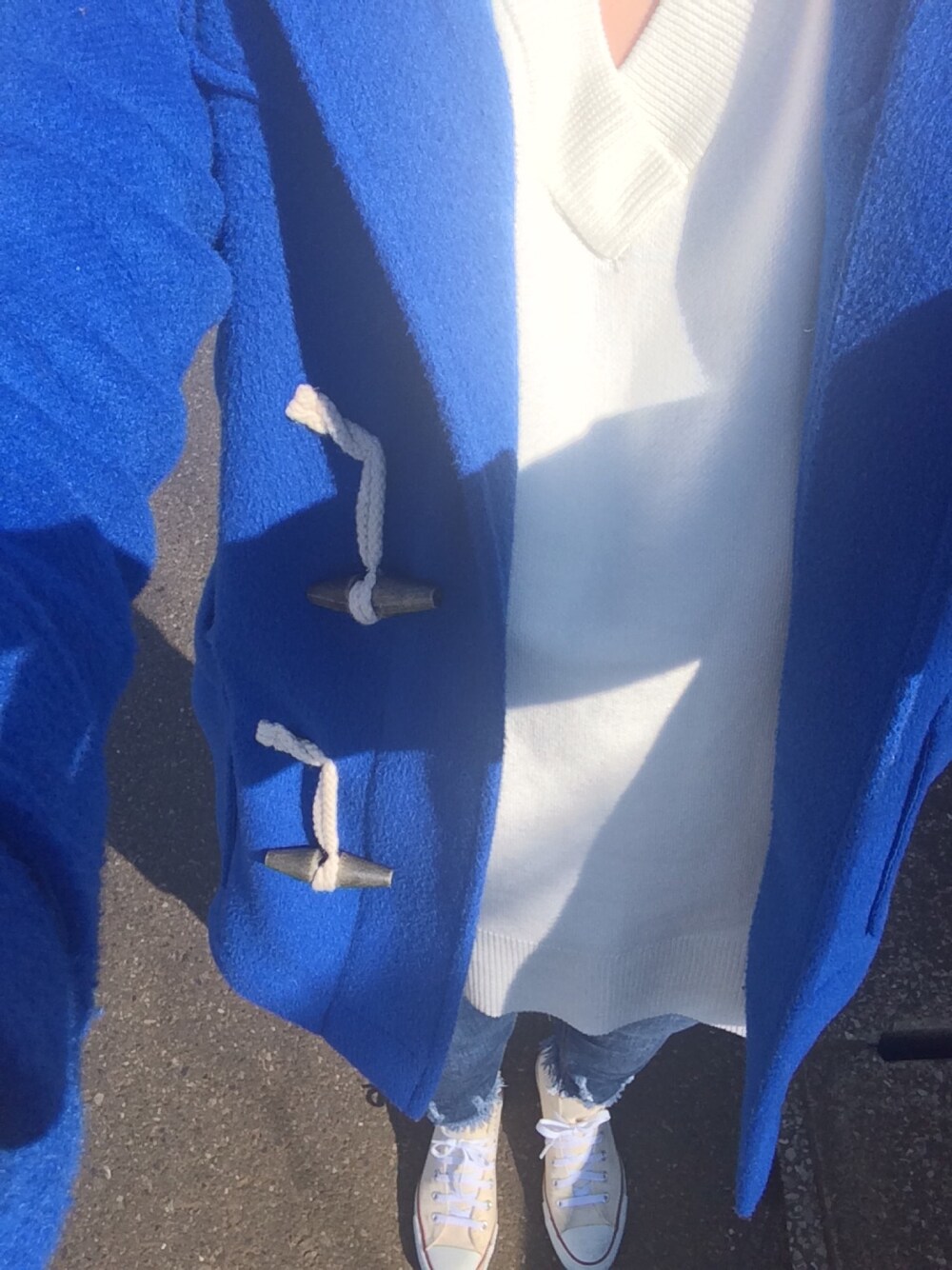 お出かけにブルーの発色が綺麗なダッフル着たよ〜🤗 ローソンにスイーツ買いに☕️🎂