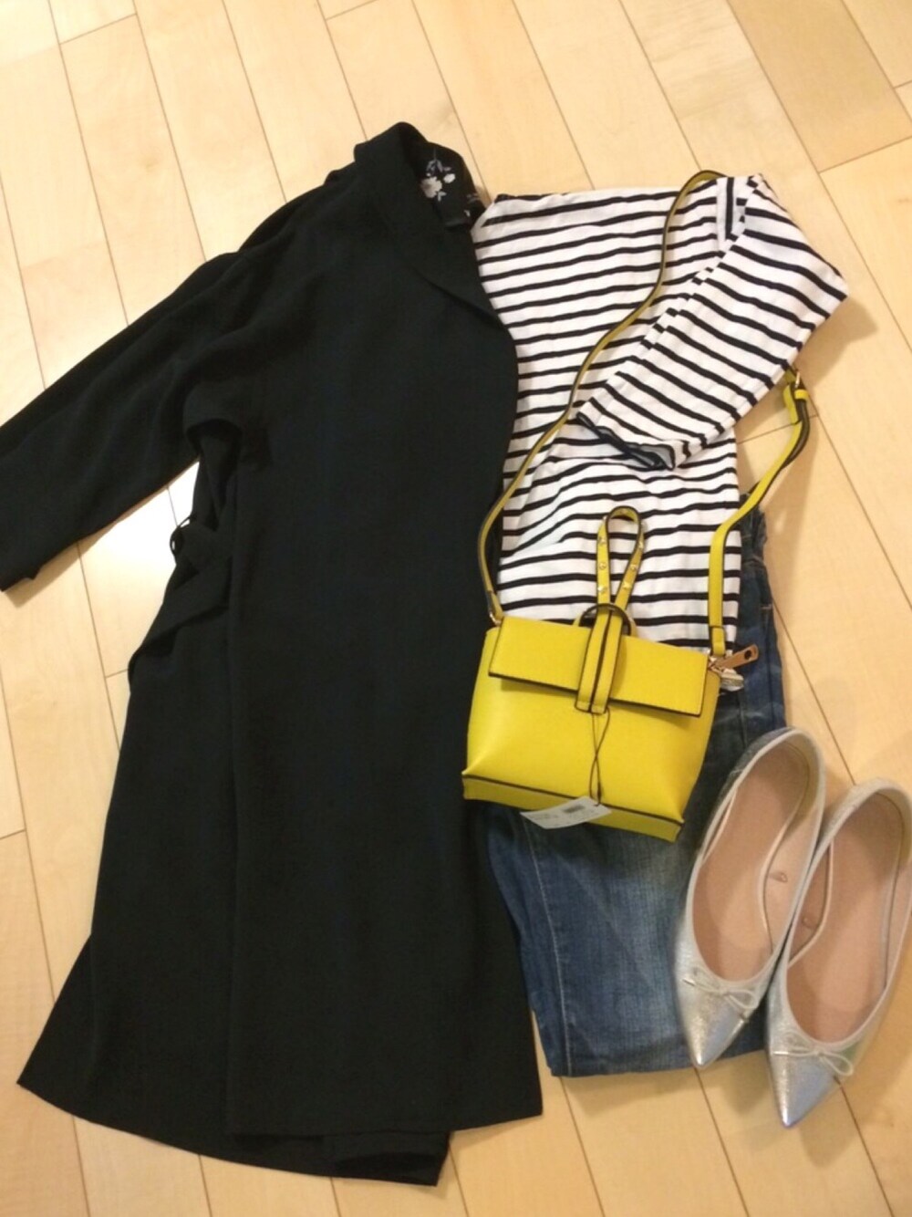 今日はRODE SKOで購入したばかりのイエローバッグを差し色に 全身ネイビー系でまとめました!