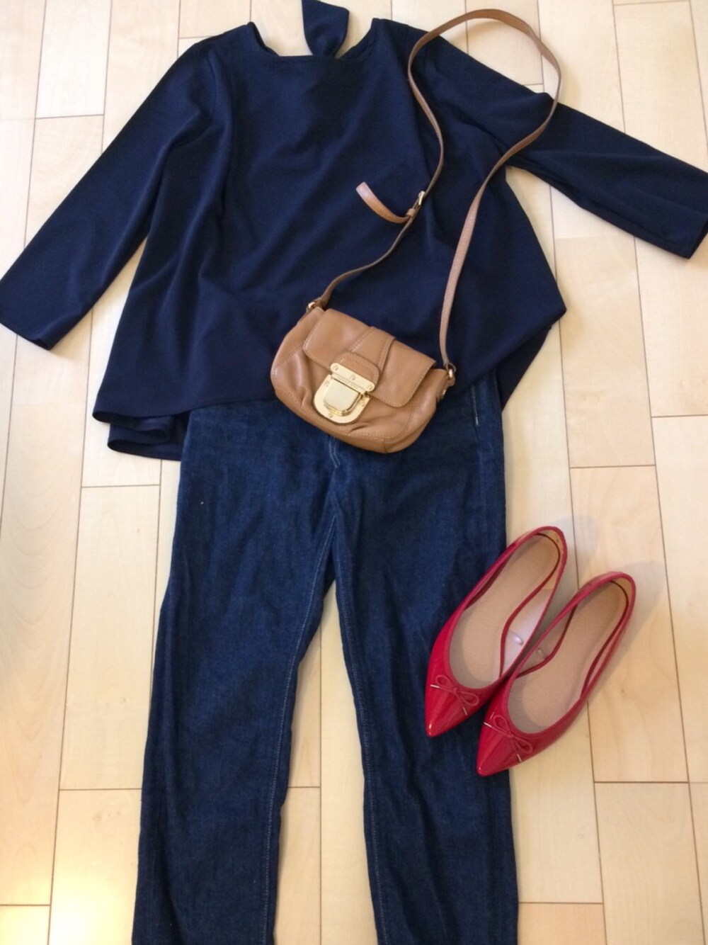 しまむらの500円トップスでネイビーコーデ。