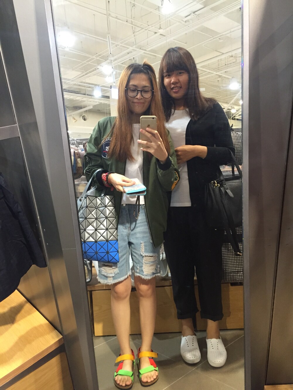 男孩風 素T 五分牛仔短褲 配軍綠棒外 再穿上個性涼鞋👏🏻👏🏻👏🏻