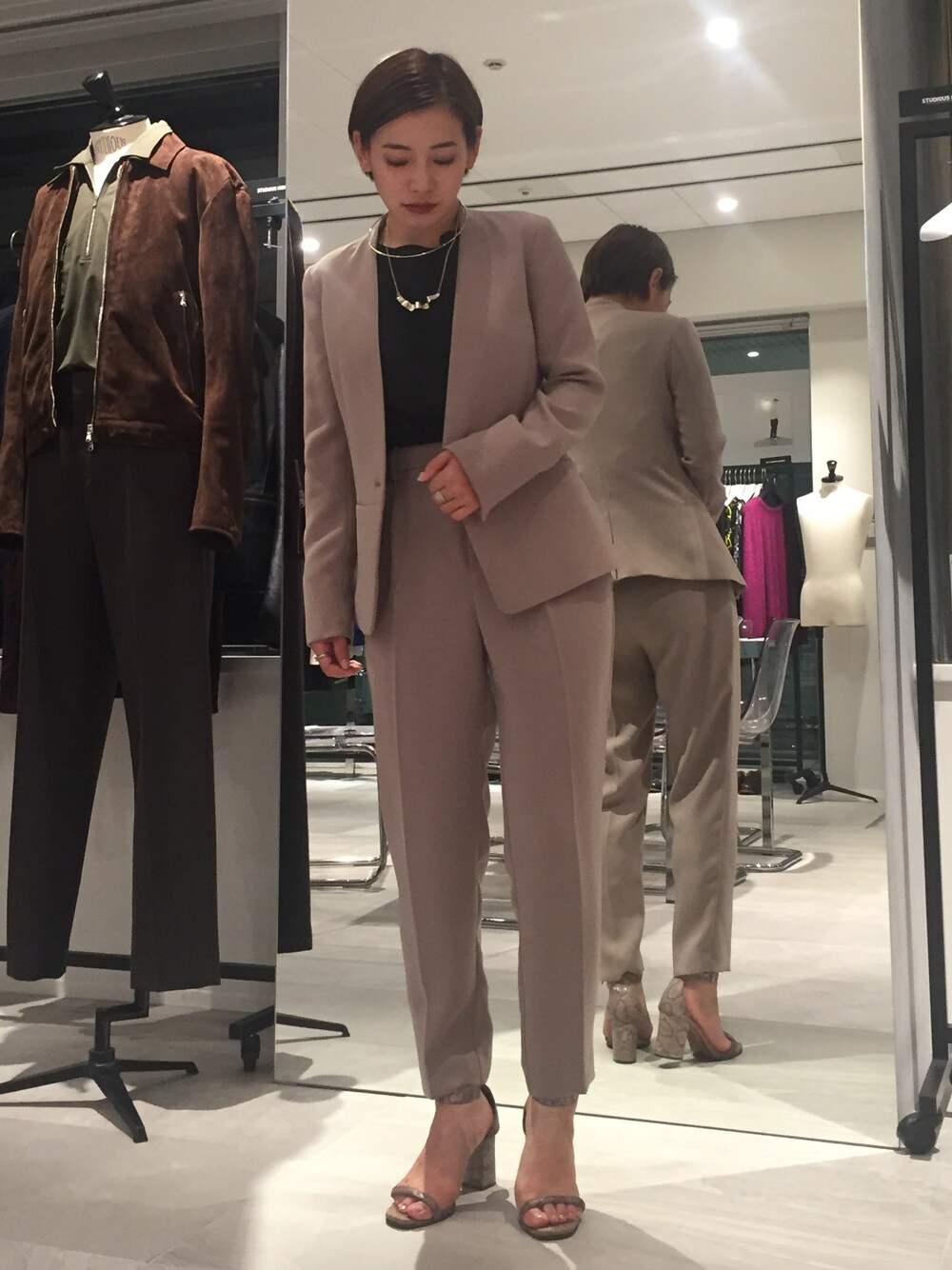 funnybunnysallyのテーラードジャケット「ダブルクロスカラーレスジャケット」を使ったコーディネート