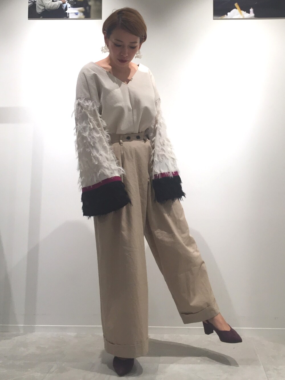 ばしっばしに存在感のあるトップスはコーデュロイとチノでカジュアルダウン