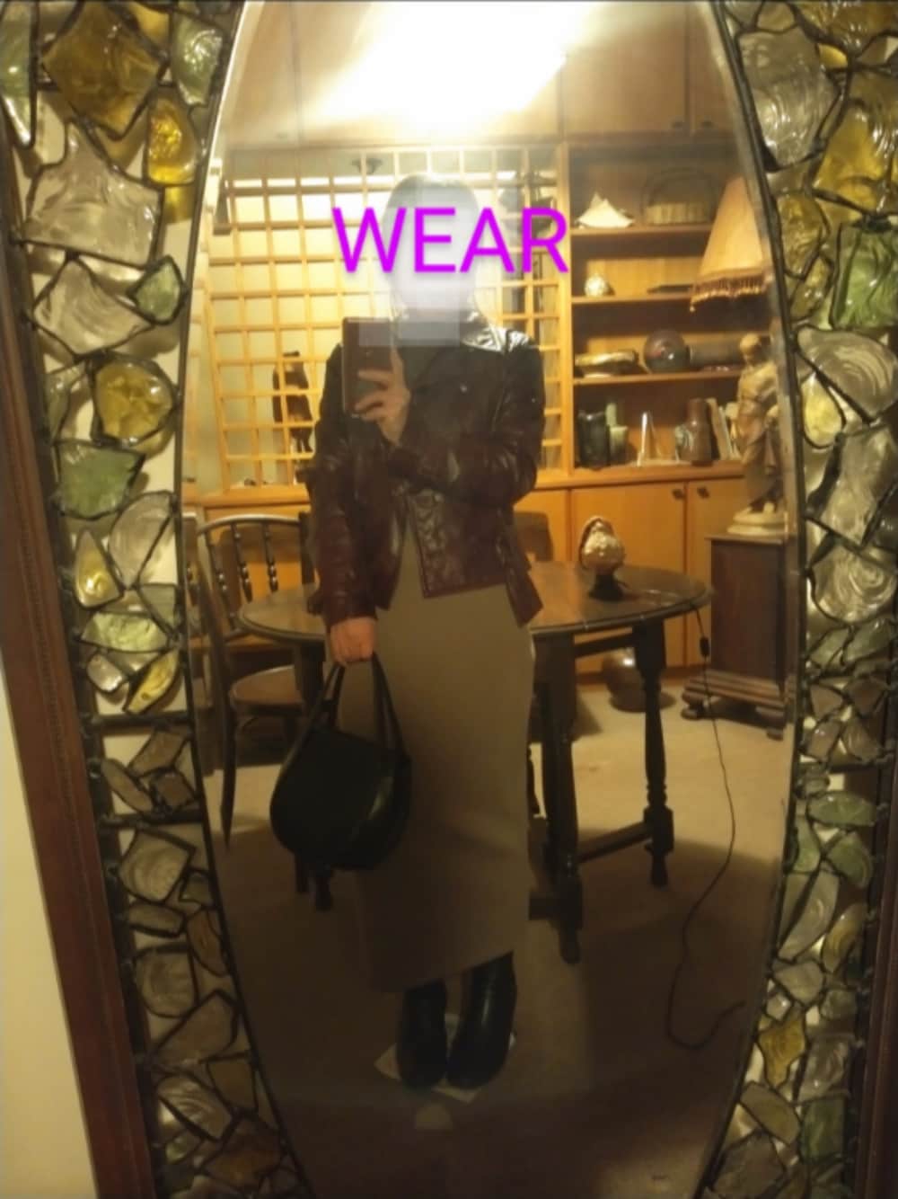 お出かけの機会にお姑さんにもらった攻めたライダースをどうにか活用したいコーデ (自分用メモ) ・ニットベストはジャケット脱いだときに活躍する ・ニットベストは食べ放題のぽっこりお腹をカモフラージュできる ・ニットベストのバックの編み上げがジャケットの裾からプラプラしているのがあまりかっこよくない ・ヘアスタイルはしばったポニー