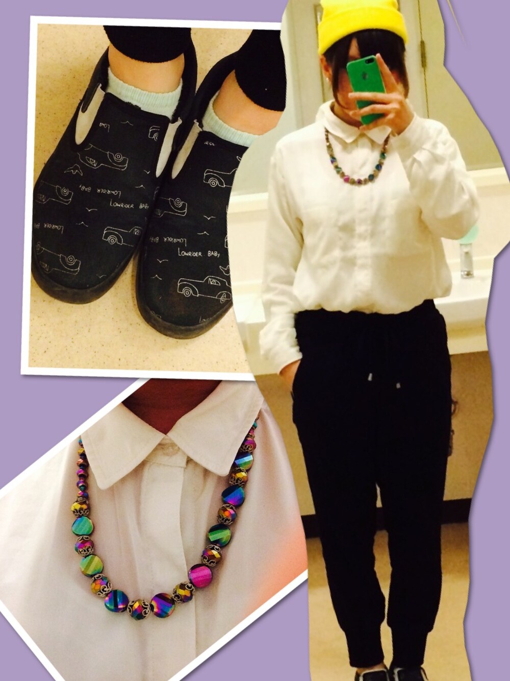 プチプラ コーデ ✝ 差し色にニット帽とネックレス