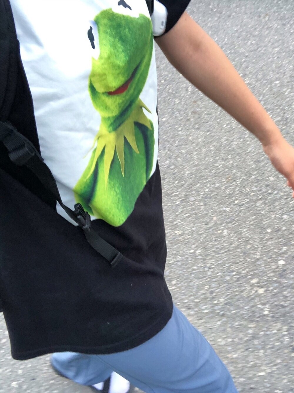 弟から借りているカエルのTシャツ!🐸🐸🐸🤍 古着屋さんで見つけたらしい、、 かわいすぎる❤️❤️❤️