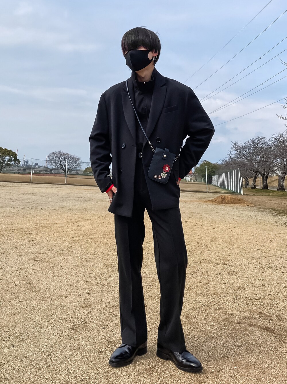 インスタで人気だった オールブラックコーデ! 最近流行りの韓国コーデの様な雰囲気の セットアップとスタイルにジップジャケットをinnerに使い他とは少し差がつく スタイルに仕上げました。 袖の赤のワンポイントとバックの赤の花を差し色としてマッチさせました。 足元はスラックスと革靴でコーデにまとまりをつけました。 その他SNS Instagram▷▶︎▷▶︎ @t_suda93 TikTok▷▶︎▷▶︎ @t_suda93 毎日更新中フォロー待ってます! 最後まで見てくれてありがとうございました。良ければいいねだけお願いします。