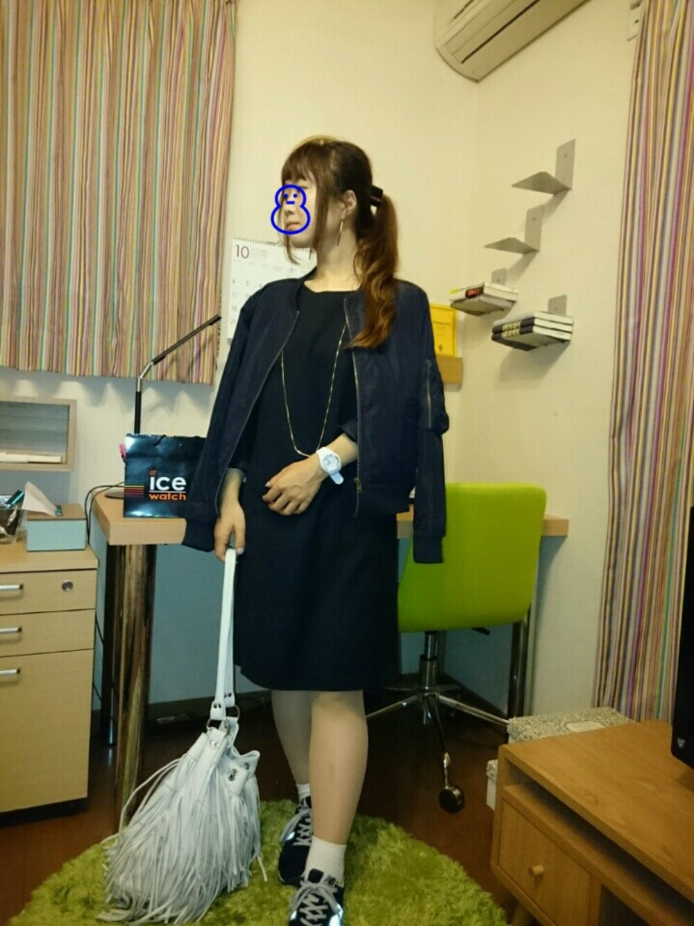 皆さま、いいね、SAVE、フォローありがとうございます! うっかりコンタクトをしたまま寝落ちしてしまって、そのまま2日目に突入して既に眼球がやばい状態な雪見だいふくです。 目薬差したいけどパンダ目になるのは嫌なので諦めてます。 ただでさえパンダ目だけど。 さて、昨日のコーデです。 ネイビーのワントーンに小物で白を入れてみました。 季節感の欠片もねえな。 ポニーテールとアクセサリーでレディライクに MA-1とスニーカーでカジュアルダウンを ロングネックレスでアクセントをつけて だいたいそんな感じ ICE WATCH買ってしまいました! バイト(パチ屋)に必要不可欠な腕時計をうっかり忘れてしまい出先で調達するという行為(4回目)の末、 どうせなら良いのが欲しい! どうせならコーデに合う白いのが欲しい! という欲求に駆られ(その発想が散財の種)、 大宮ルミネのROSE BUDで見つけたのがICE WATCHというわけです。 文字盤の色、ピンクゴールドも可愛かったけど、イエローゴールドのほうがしっくりきたのでそっちにしました。 archivesのMA-1は中綿入りであったかいです! 1,000円くらいお安くなっててお得に買えました。 MA-1=カーキっていうイメージだったのですが、羽織ってみたらネイビーのほうがしっくりきて、逆にカーキはこれじゃない感漂ってました。 色んなところの試着してみたんですが、色味といい丈感といい素材感といい、断然archivesって感じでした。 普通に着ちゃうと田舎者丸出しだったので肩掛けで。 以下余談。 バイトとは言ってもフリーターというわけではなく、 資格の勉強をしつつ、無収入は大変に困るのでバイトをしているという状態です。 この年になって未だに穀潰し状態で肩身が狭いです…_(:3」∠)_ こんな話誰も求めてないですね。すいません。 コーデ撮りだめたものがいくつかあるので、このあと連投するかもですがお付き合いくださいませ。 それでは皆さま、良い週末を。