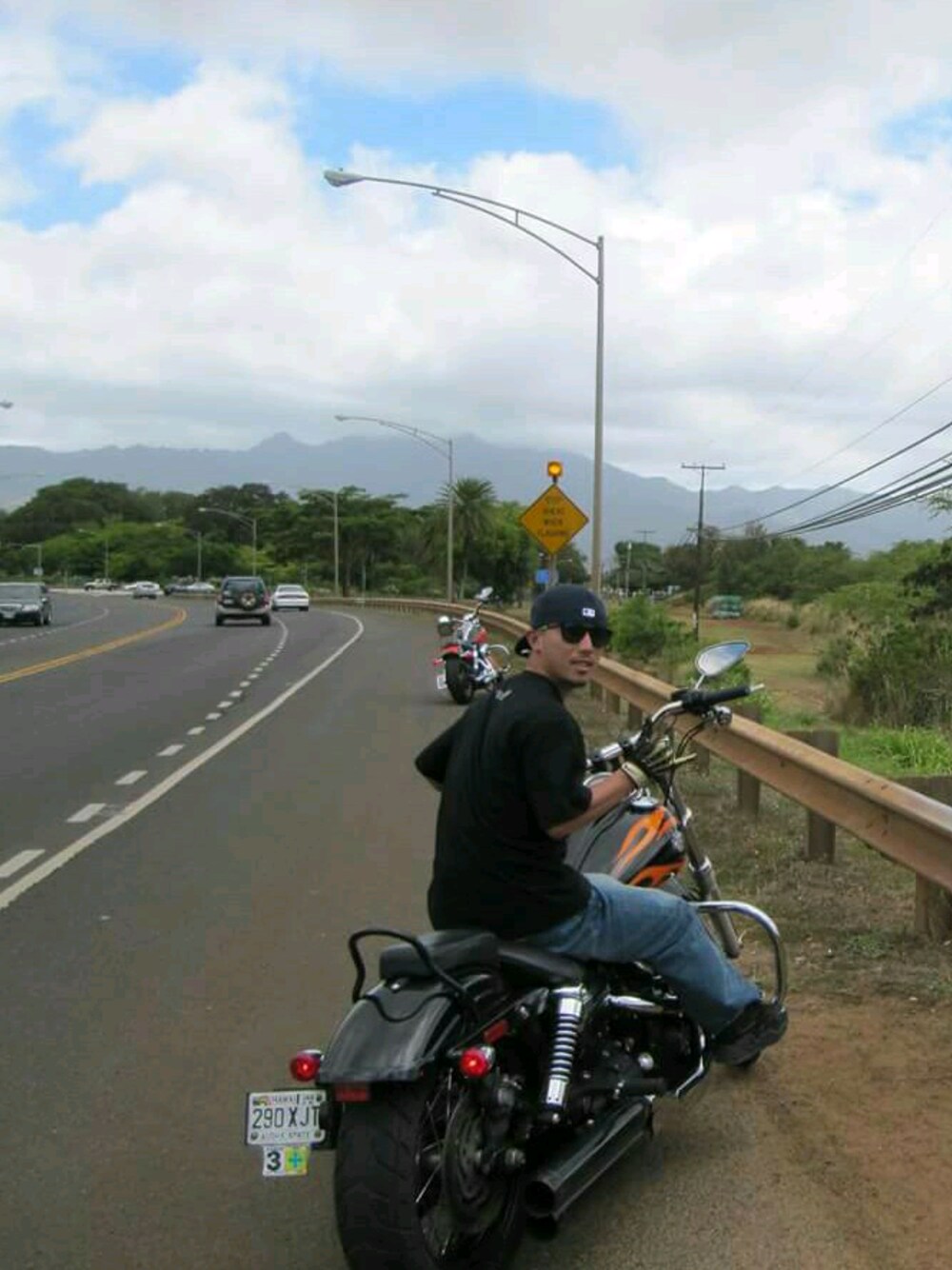 オアフ島1周したときの記念の写真🚲 HARLEY-DAVIDSON FXDWG 1584cc デザインがハーレーらしくてカッコいいマシンでした🎵