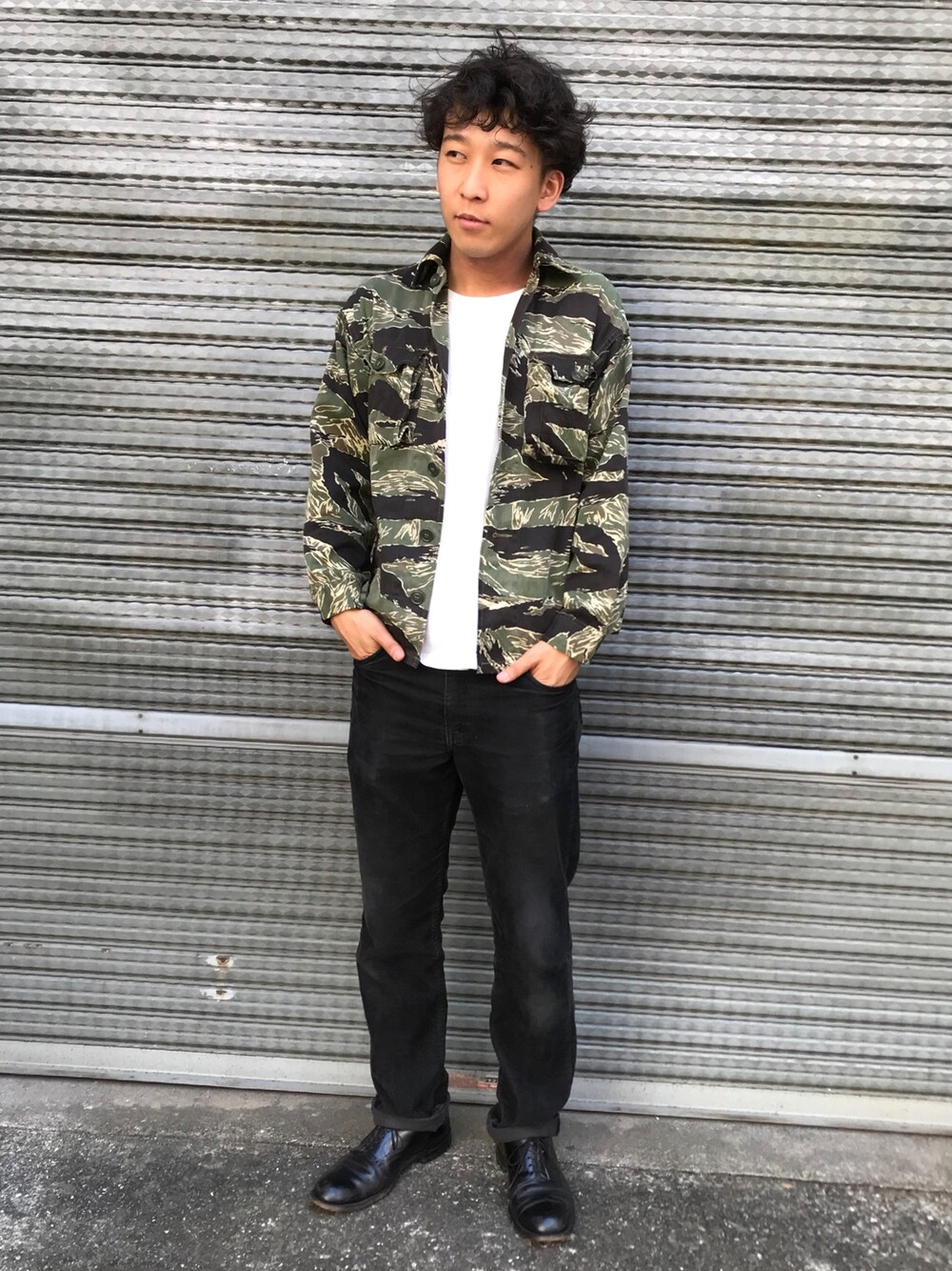 シンプルなコーディネートですがタイガーストライプのJKTでアクセントをプラス✌️