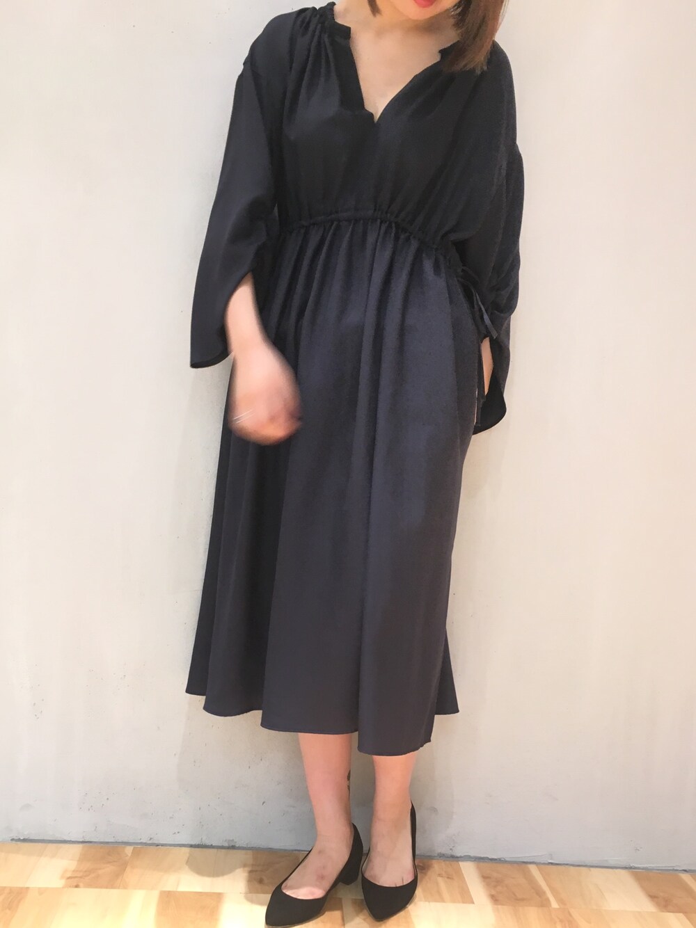 首元、袖まわりすべてデザイン性がありどこから見てもかわいいワンピースです! つるっとした気持ち良い素材で着やすく下にワイドパンツなどを履いても◎
