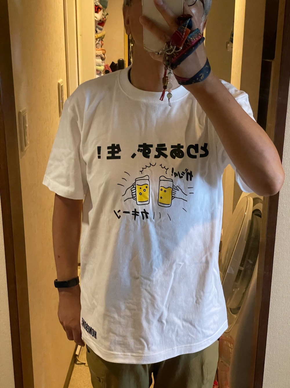 夏しか着れない「とりあえず、生!」Tシャツ。フォークデュオHONEBONEの限定グッズです。 先日、コレを着てビアガに行って来ました。
