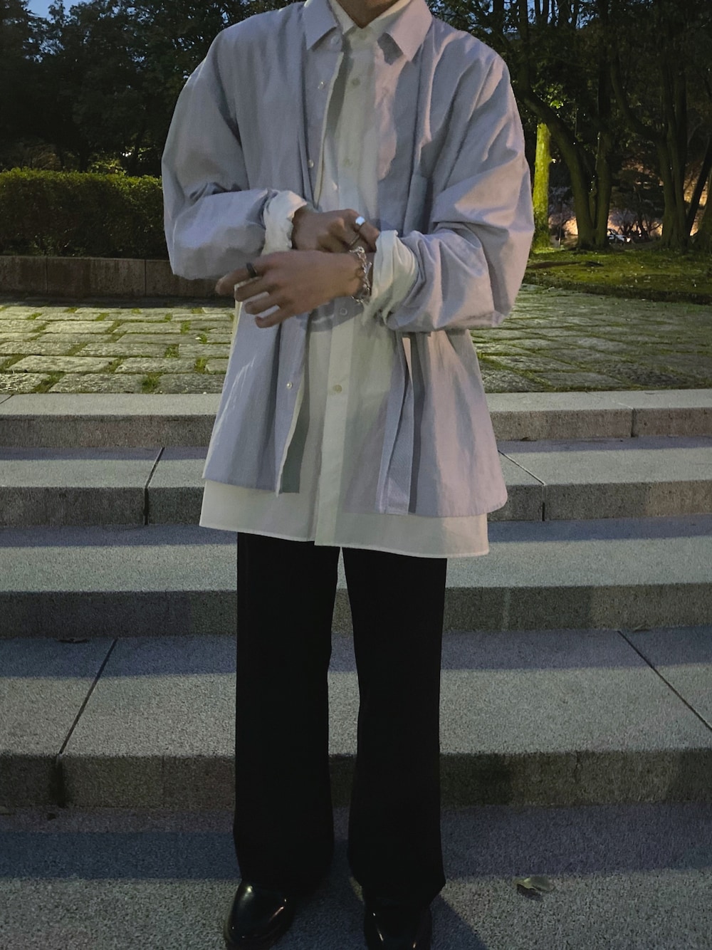 このシャツ春感満載でたまらんね。 sunseaはいつも通りシルエット綺麗すぎ。