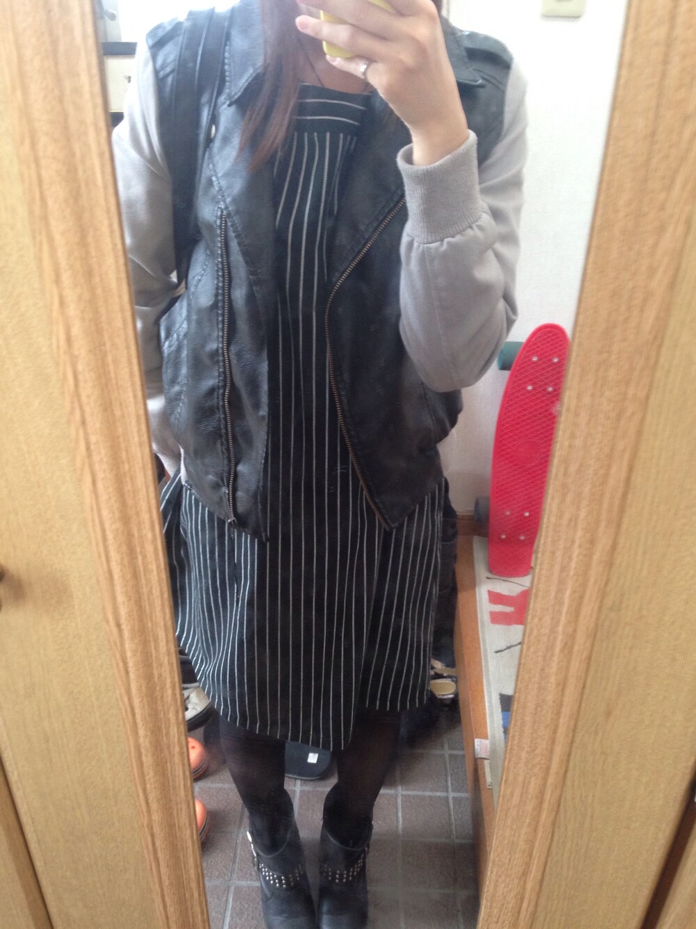Kaede.のライダースジャケット「黒×灰色ライダースジャケット」を使ったコーディネート