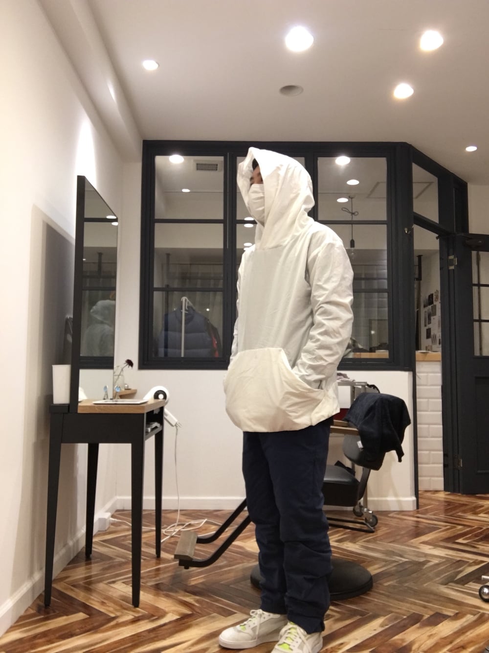 テアトラのアノラックフーディーがありそでない形と色でお気に入り。 通販やってます。 インスタ stem_hair_salon