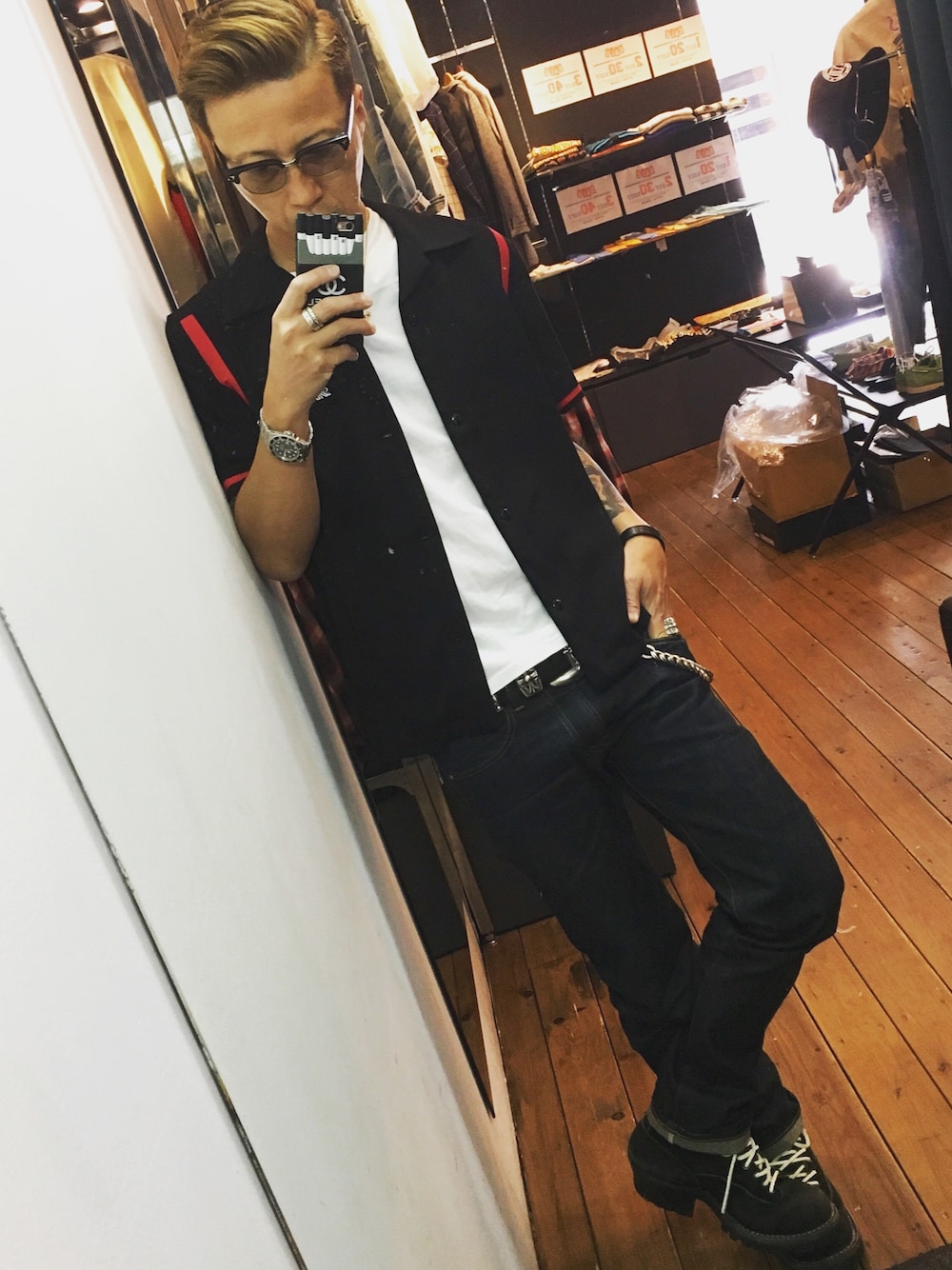 666ROLEXEFFECTORCHROME HEARTSこの画像から似たアイテムを検索できます2,94218お気に入り (3)180松崎成樹さんへのコメントNO COMMENTコメントはスマートフォン用アプリからご利用できます着用アイテム666666シャツ/ブラウス (ブラック系)シャツ/ブラウス探すZOZOTOWNで探すROLEXROLEXアナログ腕時計 (シルバー系)アナログ腕時計探すZOZOTOWNで探すEFFECTOREFFECTORメガネ (ブラック系)メガネ探すZOZOTOWNで探すCHROME HEARTSCHROME HEARTSベルト (ブラック系)ベルト探すZOZOTOWNで探す松崎成樹のシャツ/ブラウスを使ったコーディネート最近また50's熱が再来してます。 今年の夏はボーリングシャツを着たいと思ってます(^^) コメントを表示2016.5.4着用ブランド666ROLEXEFFECTORCHROME HEARTSタグ#ボーリングシャツ#50's#ロカビリー#ブラック#ホワイツブーツ#クロムハーツ#EFFECTOR#夏コーデ#半袖シャツ#ブーツモデル情報男性・180cm似ているアイテム666 × シャツ/ブラウスROLEX × アナログ腕時計EFFECTOR × メガネCHROME HEARTS × ベルト松崎成樹@sterling / MEN0コーディネート0フォロワー注目のコーディネートアプリでもっと見るもっと見る