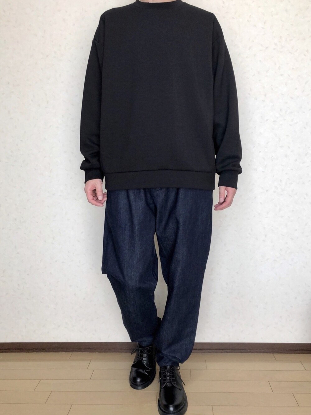 Tops→ ダブルフェイスビッグプルオーバー(M) Pants→ デニムトラウザーパンツ(S) shoes→ オックスフォードシューズ(レディースXL)