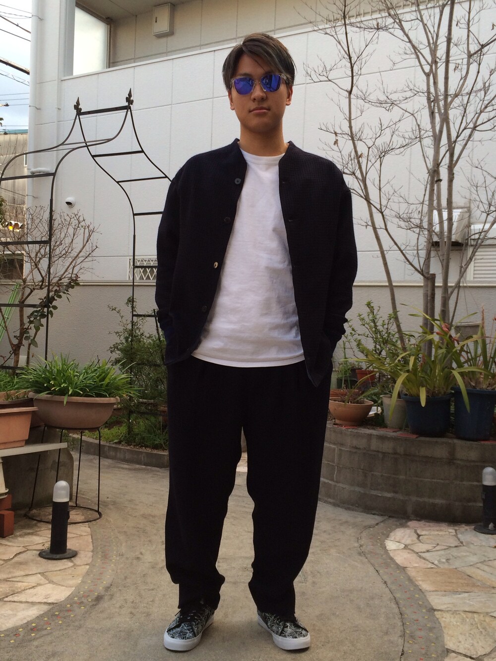 トップス:the sakaki シャツ:frank パンツ:the sakaki サングラス:oakley oakleyのフロッグスキンは軽くてとても掛け心地もいいです😇🙌昨夏にbeamsでカスタムオーダーしたのですが、まさかの既存してるカラーと同じものをオーダーしてました☝️☝️☝️the sakakiのセットアップ、最高です。