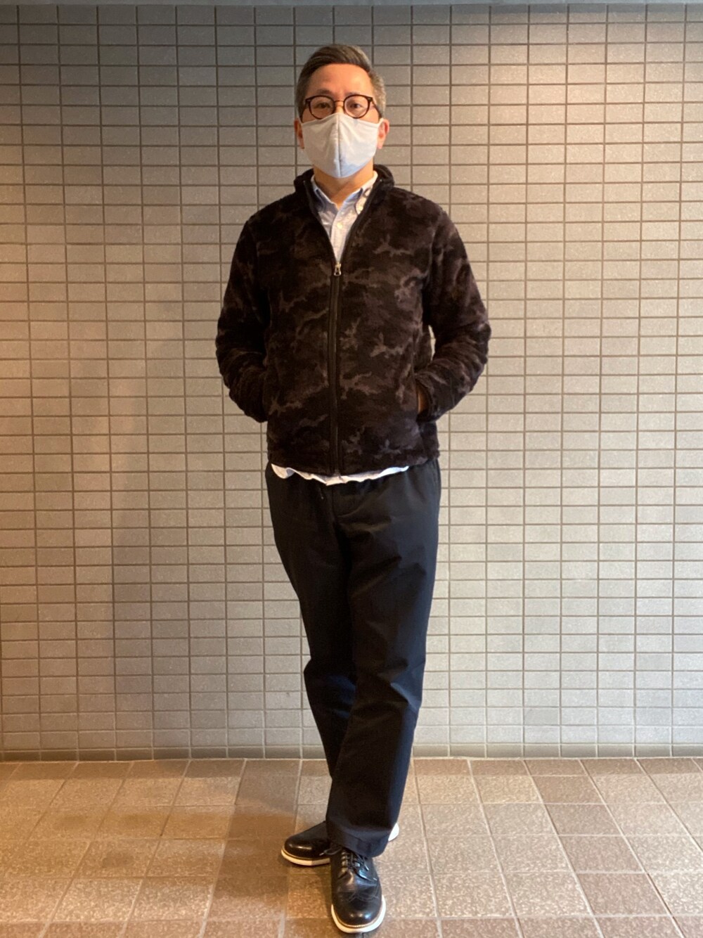 この後webミーティングなんでシャツ。 ネクタイ、ジャケットがマストのドレスコード。 んなわけでその時迄は楽ちんコーデ。 ユニクロフリースをセーター代わり。