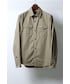 LOUNGE LIZARDらしい無骨なスタイル。 なんといってもこのカラー“カーキベージュ”がいい雰囲気を醸し出しています。 その名の通り、カーキとベージュのミックスカラーで、今回はややベージュが強いカラーになっています。 インナーに使ったボーダーがバランスをとっているので、重くなりすぎていないのもポイントの1つ。