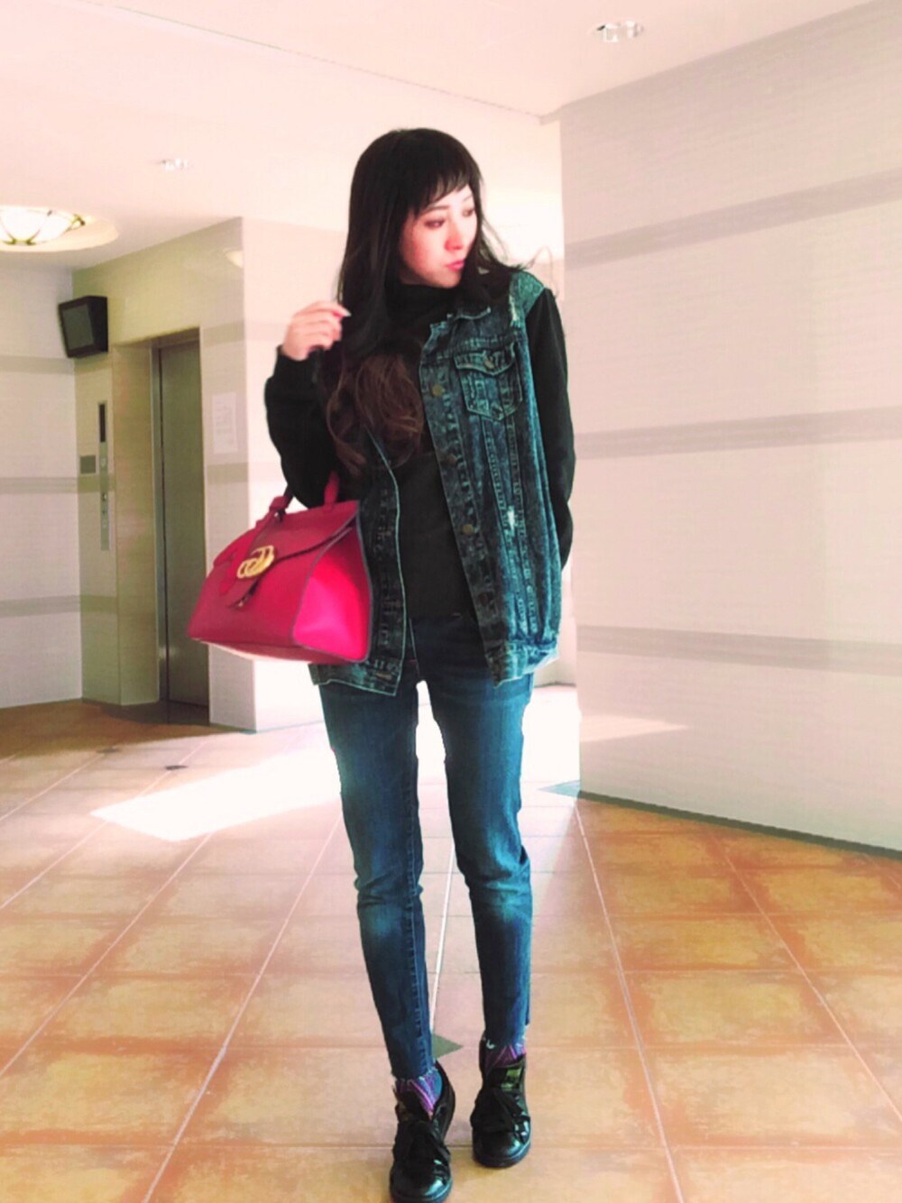 おひさしぶりの投稿です。 忙しさを理由にサボってました。 秋ですねほっこり 今日はデニムonデニムスタイルです。 ラルフのデニムもビンテージショップであさりました。 スタンスミスはブラックのオールレザーで文字はゴールドです。 今日もお仕事がんばりますっ
