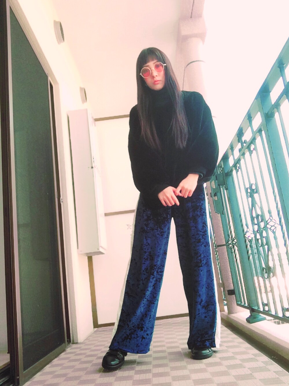 ビンテージとインポートものでまとまってしまった今日のコーデ もこもこしてます ジャージっぽくみえるこのベロアパンツがかわいくなりすぎずお気に入り ベロアってどうしても女の子っぽい感じがしちゃうから 最近ゲットしたカラーサングラスも登場してスパイスきかせてますぴりぴり