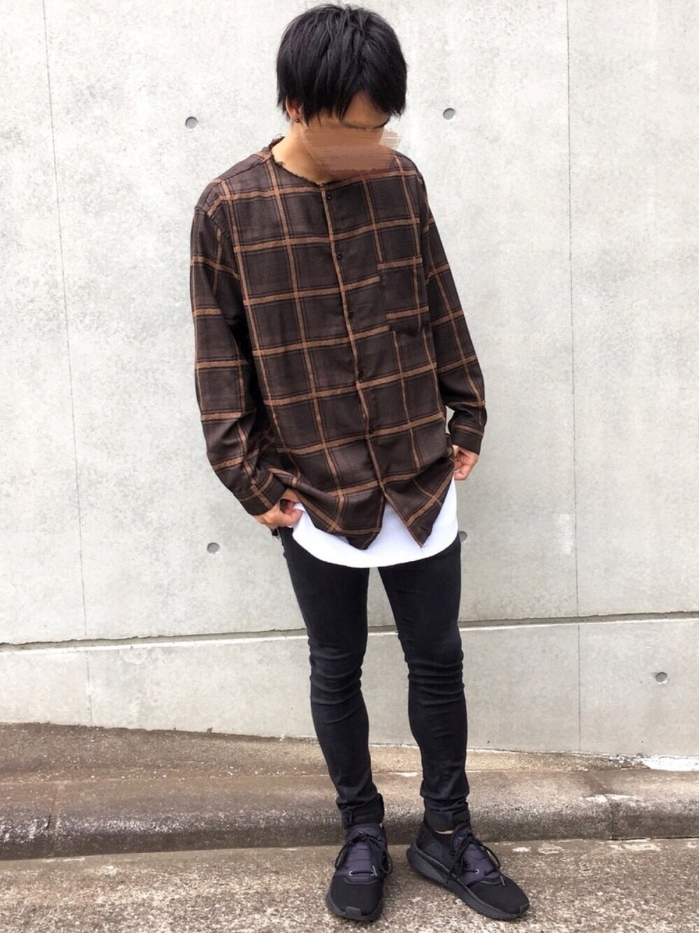 《ノーカラーチェックシャツコーデ》 niko and のシャツ。 サイズ感、柄、デザインにこれだ!と思って買いました 秋らしいブラウンの色味にオーバーサイズでトレンドを抑えたシャツです👔 着丈が長いので、長いのが苦手な人は小さめのサイズを選ぶと良いと思います。 【size】 -------------------------------- shirt:L tank-top:XL pants:27inch shoes:26.5cm --------------------------------
