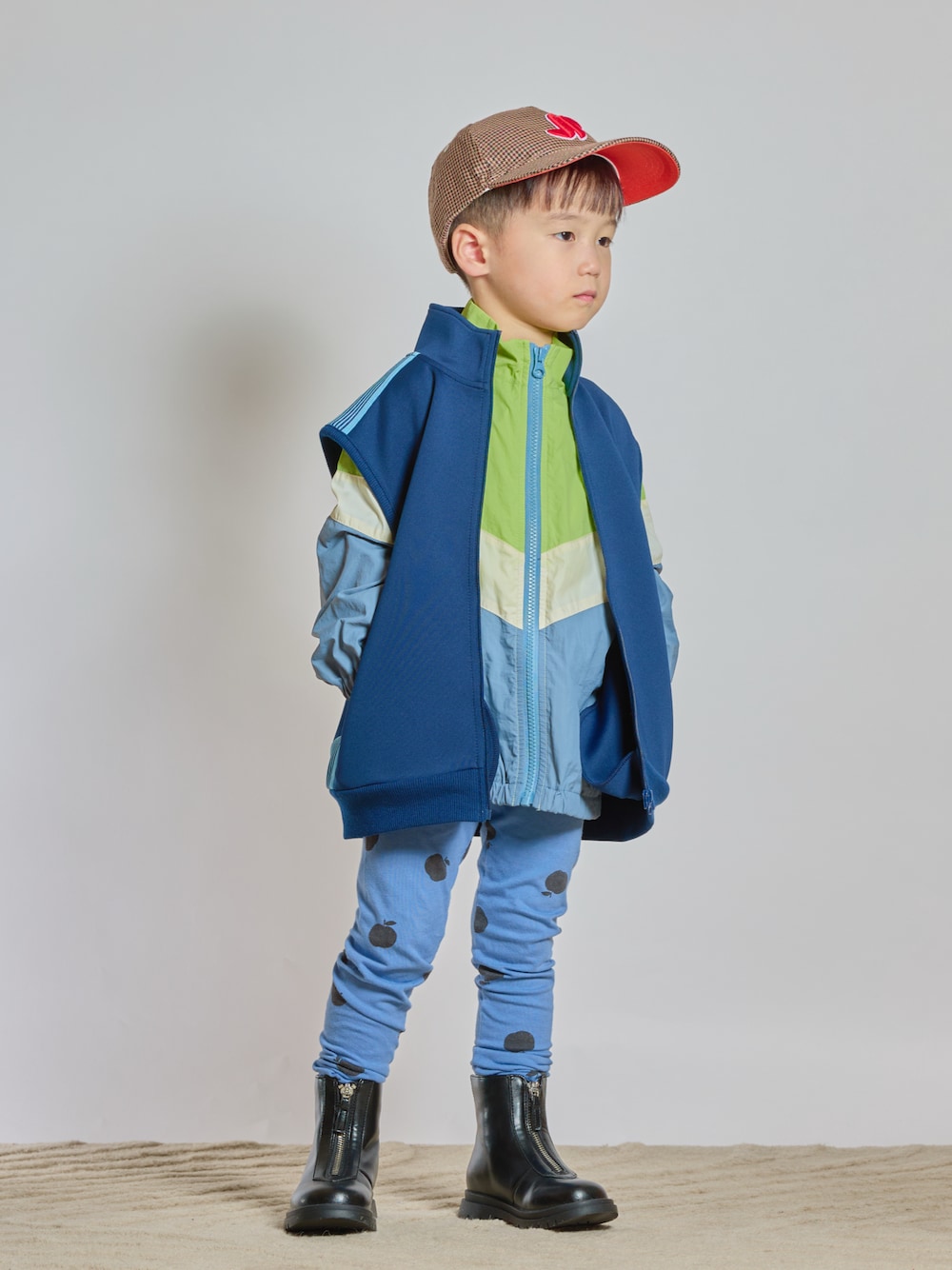 <CIAOPANIC TYPY> ストレッチトラックジャージーベスト ■ color: ネイビー/ブラック/ブラウン ■ size: SーXXLcm STKくん100cm ネイビー S(100-110cm)サイズ着用